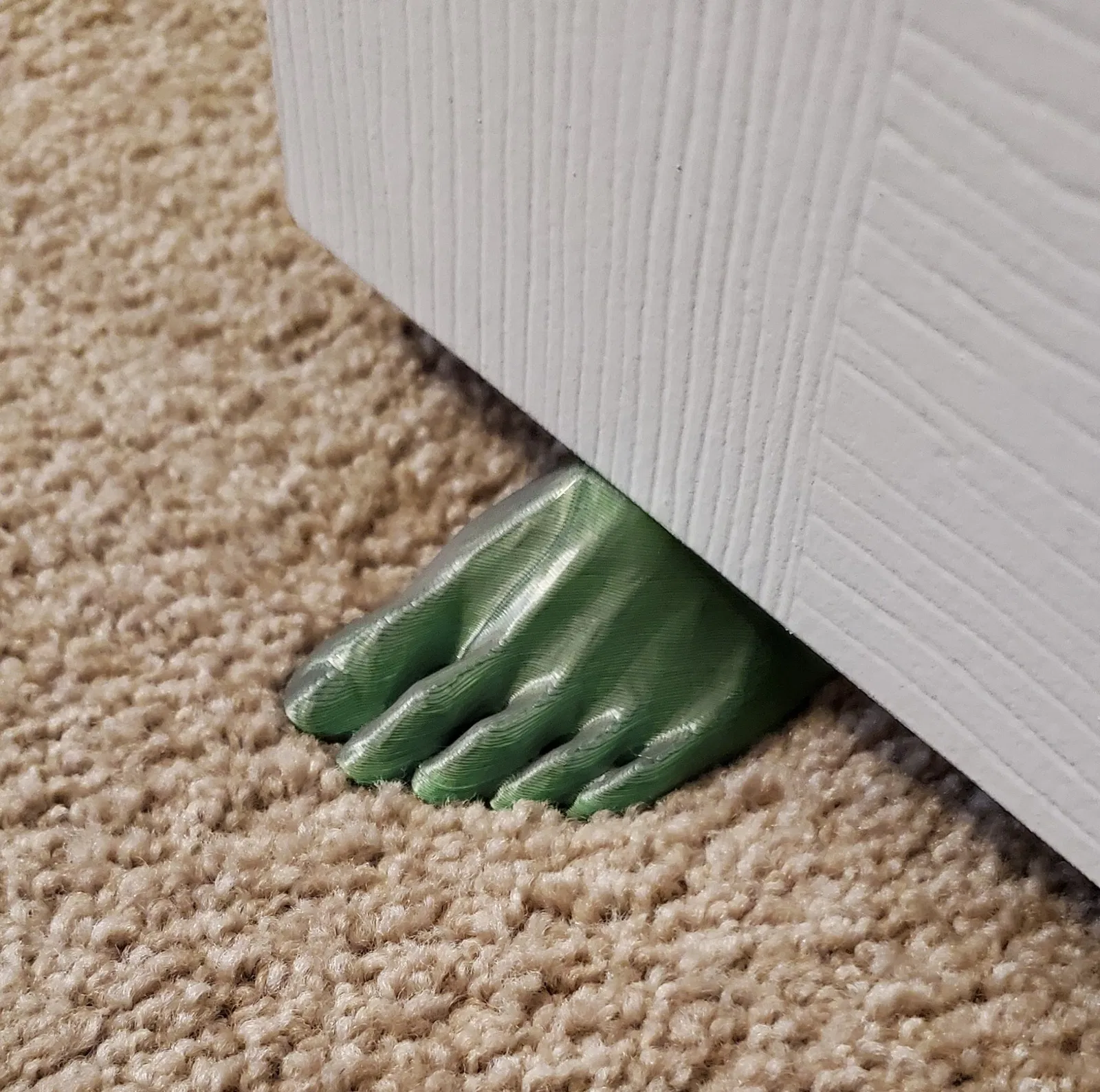 Điều này sẽ hoạt động tốt nhất nếu được sử dụng trên thảm hoặc nếu in bằng vật liệu linh hoạt. Chỉ cần đặt đồ chặn cửa, ấn xuống và di chuyển cửa lên trên nó.