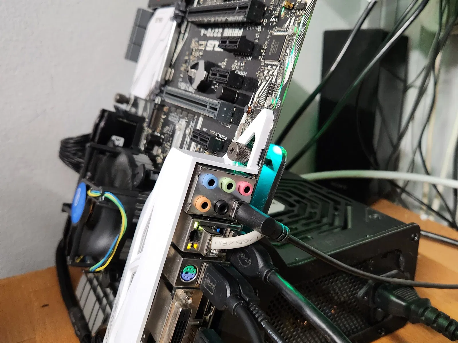 Để gắn bo mạch chủ, bạn cần sử dụng sáu chân đỡ vỏ mà bạn có thể vặn trực tiếp vào khay bo mạch chủ đã in. Tùy thuộc vào độ chính xác in ấn, bạn có thể cần khoan lỗ để chân đỡ có thể được vặn vào.