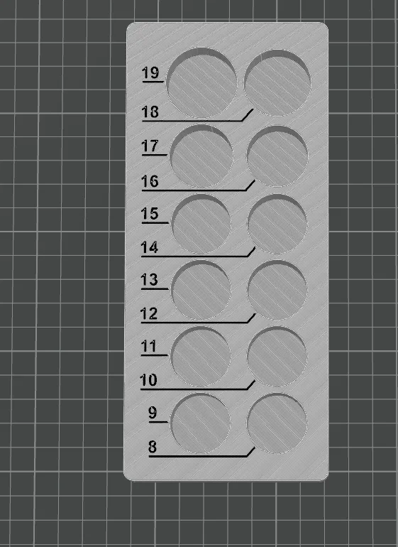 Đáy là các ô gridfinty 21mm tương thích với lưới 42mm tiêu chuẩn.