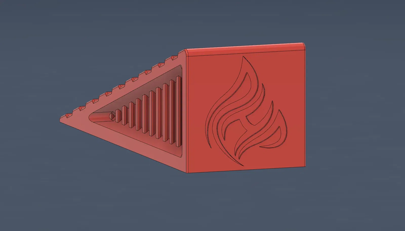 Đây là thiết kế của tôi về cái chêm cửa. Tôi đã làm các cạnh với các đường cắt nhẹ để tăng tính thẩm mỹ và giảm lượng vật liệu sử dụng, và phần trên của mô hình có bề mặt để giữ chặt cửa.