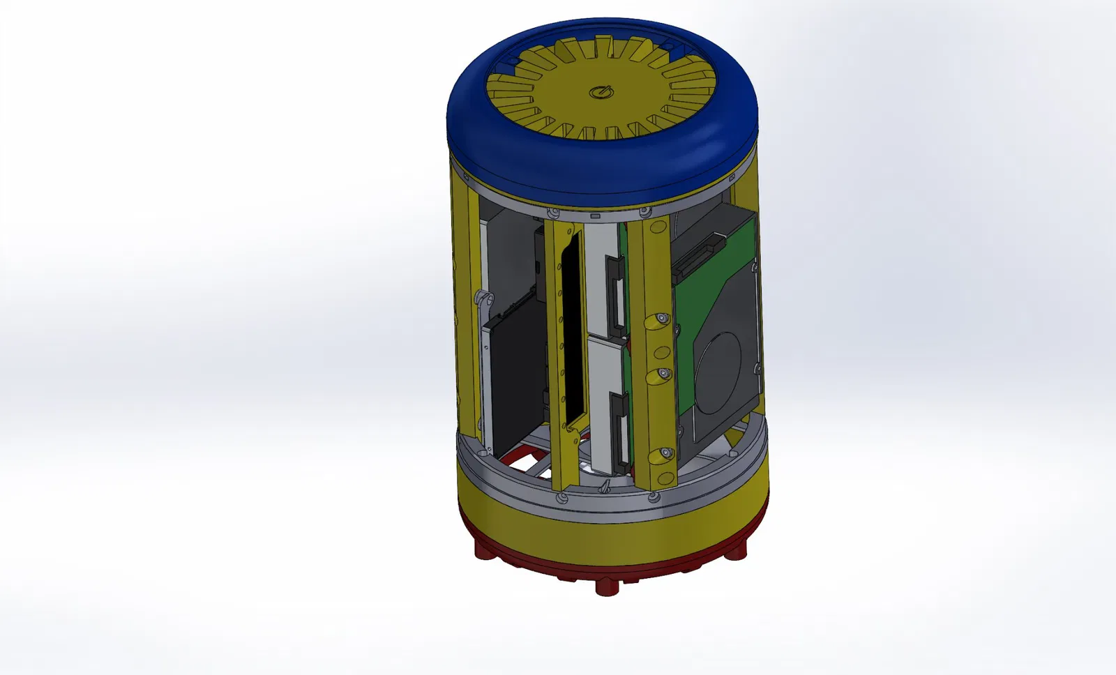 Khung được xây dựng xung quanh quạt 180mm ở phần dưới. Nó chứa bo mạch mini-ITX, bốn ổ cứng HDD 3.5 và hai ổ SSD 2.5 + ổ m2 cho bộ nhớ đệm SSD.