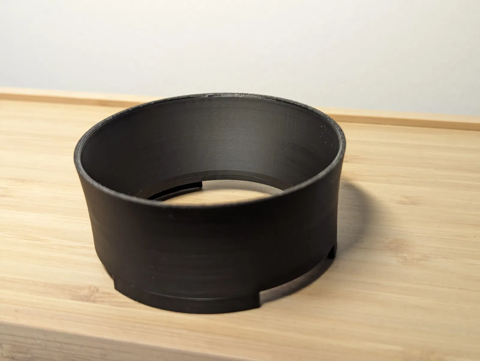 Chiếc phễu này vừa vặn trên tay cầm, được giữ cố định bởi chín nam châm 4x2mm, và ngăn chặn việc tràn ra ngoài khi phân phối bột cà phê trong giỏ lọc.