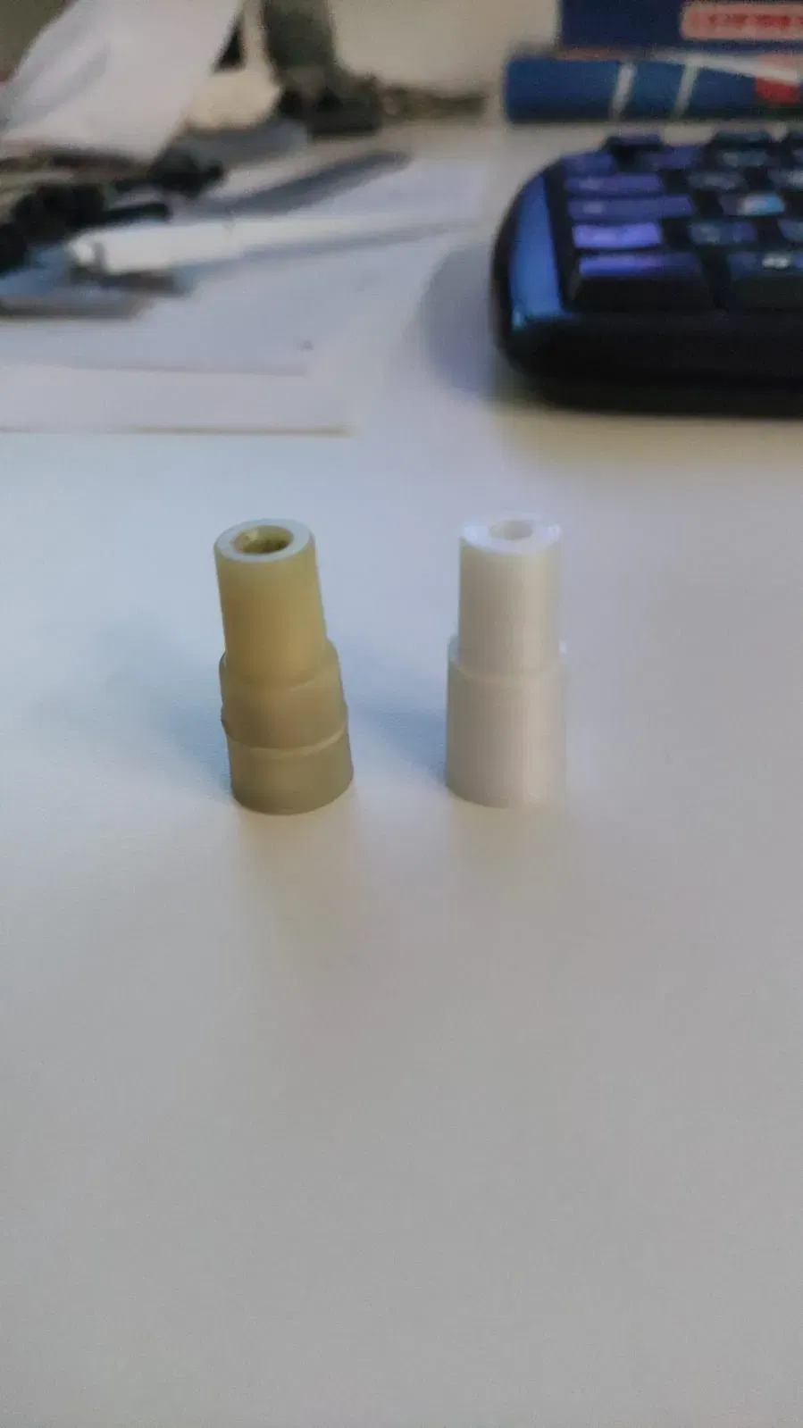 Thật đáng tiếc là không phải lúc nào cũng có thể mua tất cả các phụ tùng thay thế cho các thiết bị điện gia dụng. Trên máy xay cầm tay, "Mitnehmer/Kupplungsteil" đã bị hỏng. Tôi không thực sự muốn vứt bỏ nó. Sau vài lần thử, tôi đã quản lý để tái tạo phần đó với các kích thước chính xác. Thiết bị lại hoạt động tốt.