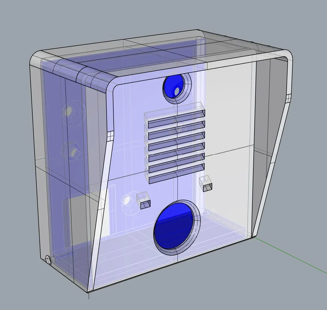 Sử dụng hai đai ốc M4 và dán chúng vào các rãnh ở mặt sau của phần “Housing Fanvil intercom-1”. Cố định phần này lên tường bằng hai vít chìm có đường kính tối đa 5 mm. Nhớ kéo cáp cho bộ đàm qua lỗ thích hợp trong phần in. Để chống nước cho lỗ cáp ở mặt sau, nên sử dụng keo, RTV hoặc tương tự. Kết nối dây vào bộ đàm và vặn bộ đàm vào phần in bằng 2 vít M4x25. Bây giờ trượt “Housing Fanvil intercom-2” từ trên xuống dưới qua bộ lắp ráp và cố định bằng hai M2x10 hoặc ST2.2x9.5 hoặc tương tự.