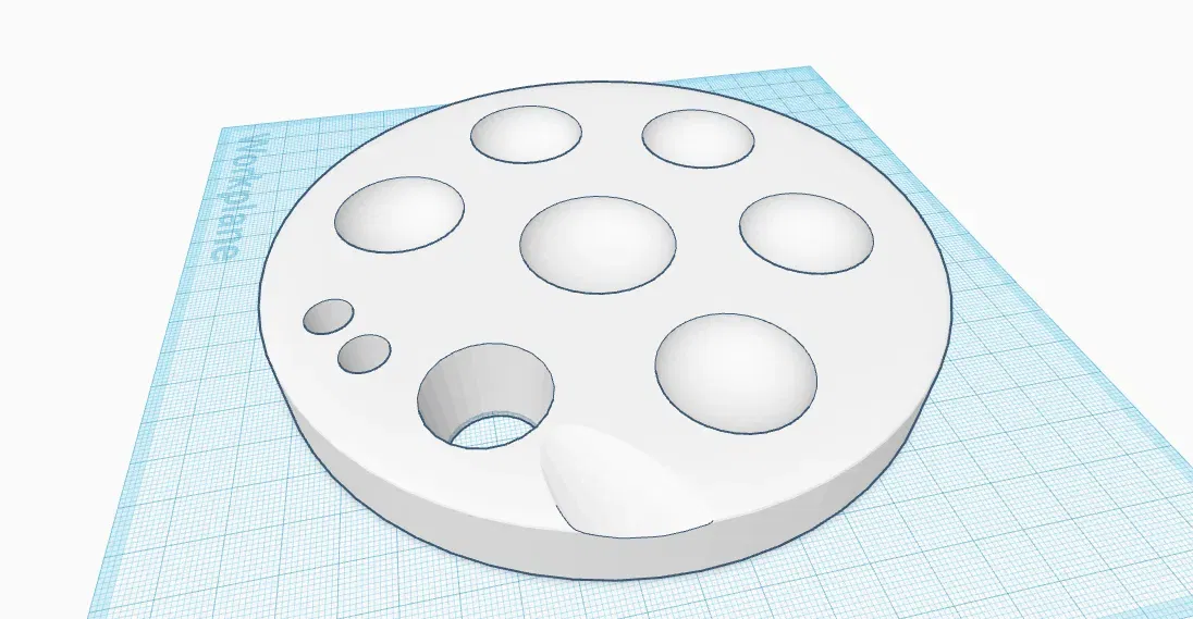 Đây là một bảng màu để vẽ và tô màu. Bạn có thể cất cọ trong các lỗ nhỏ, đặt tay lên lỗ lớn hơn và tất nhiên là cất và pha trộn màu. Những bức tranh đầy màu sắc!