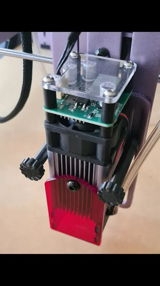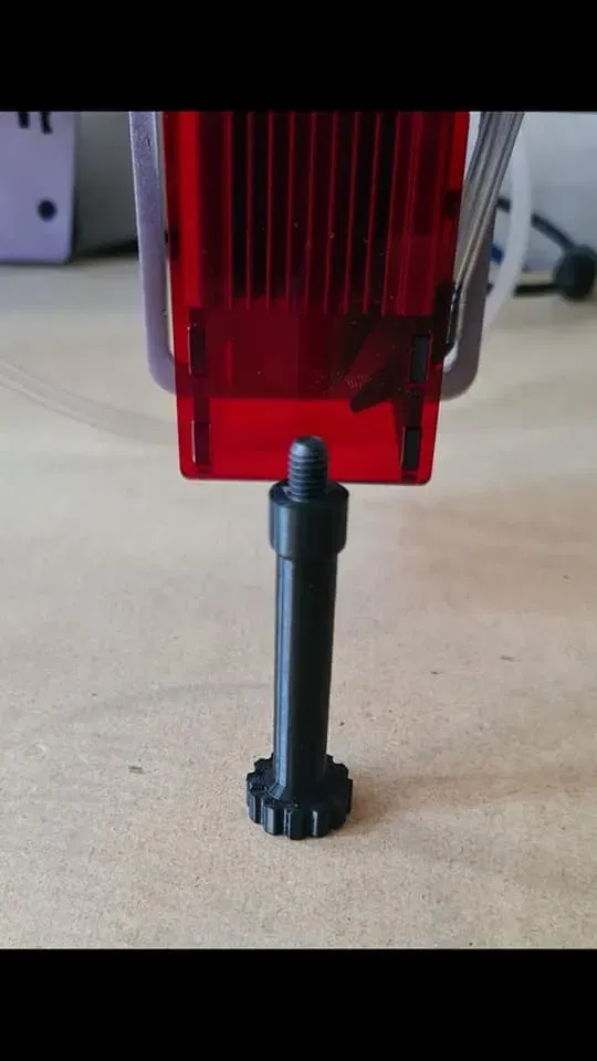 Tôi thiết kế cái này như một tùy chọn để điều chỉnh nhanh tiêu điểm của laser mà không cần thêm một ốc trục z, điều này giúp việc điều chỉnh diễn ra rất nhanh với sự hỗ trợ của trọng lực và miếng đệm 2mm đi kèm.