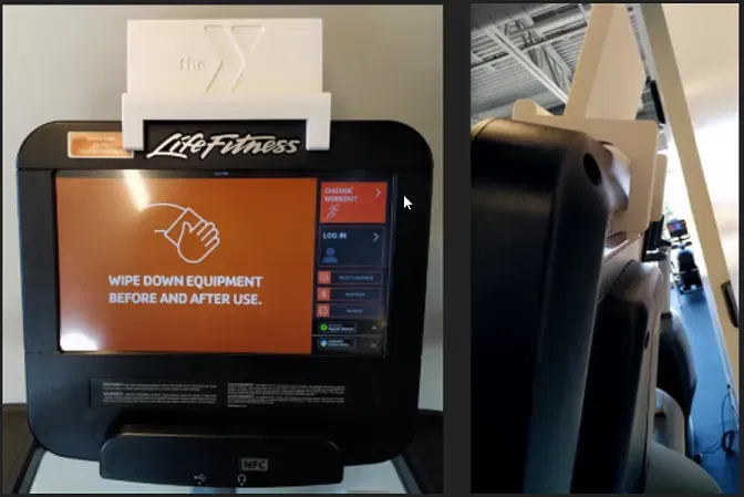 Được thiết kế và in để phù hợp với máy leo cầu thang tại phòng gym YMCA địa phương của tôi. Nó được dự định là một giá đỡ cho điện thoại/máy tính bảng và chỉ cần kẹp vào phần trên của thiết bị.