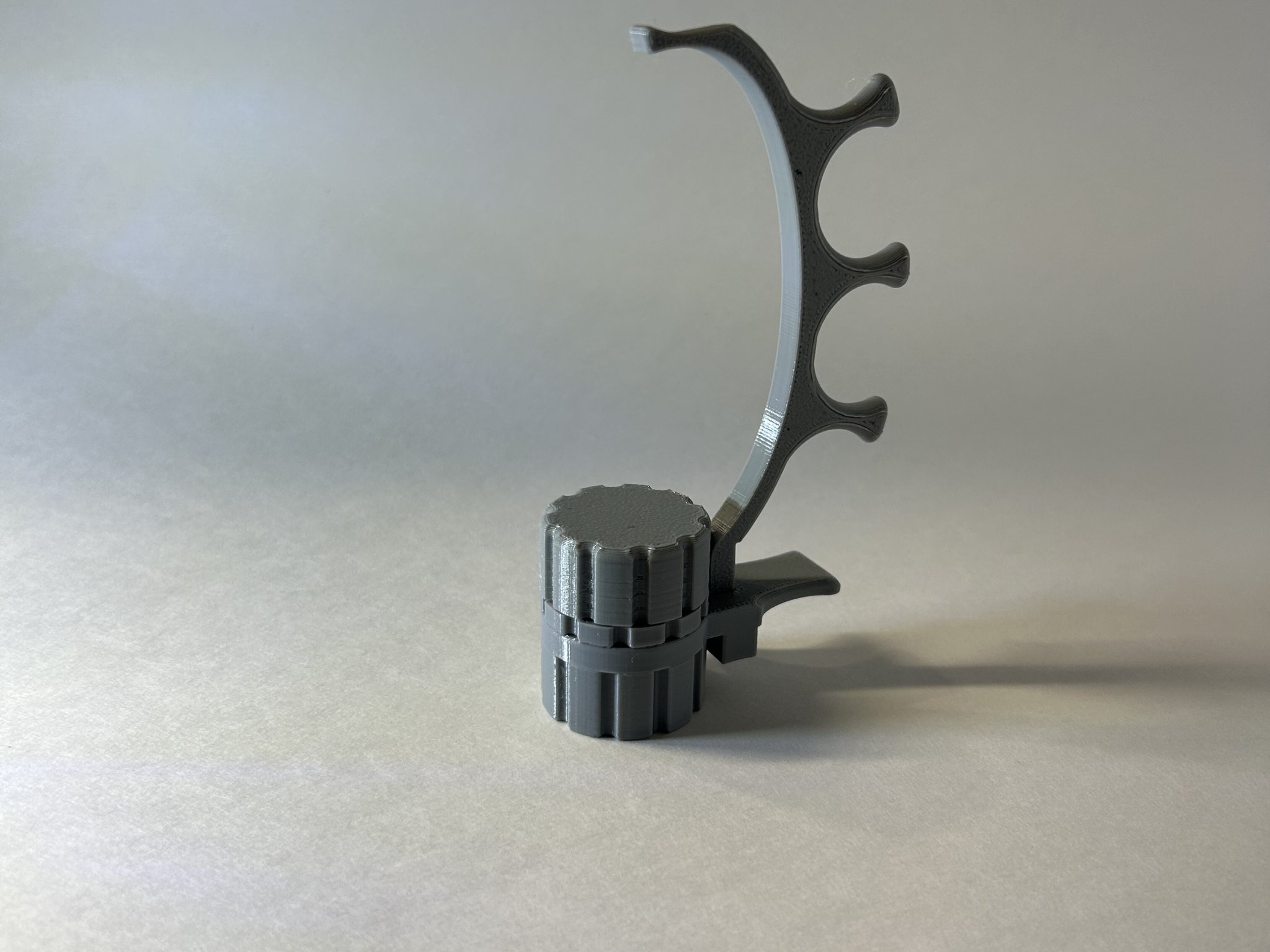 Cán - Đây là nơi tôi thiết kế mọi thứ hơi khác một chút. Tôi đã từ bỏ thiết kế lắp ghép của mô hình gốc và thay vào đó chọn sử dụng ren vít. Điều này cho phép lắp ráp dễ dàng hơn và cho phép người dùng kiểm soát xem mô hình có xoay trên trục đó hay không. Ngoài ra, tôi đã thêm một mảnh trên có ren sẽ chấp nhận nắp chai tiêu chuẩn để cho phép thay đổi dễ dàng mô hình đang được sơn. Cuối cùng, tôi đã thêm một tệp cho nắp chai in 3D cho những người không uống đồ uống với nắp chai đúng.