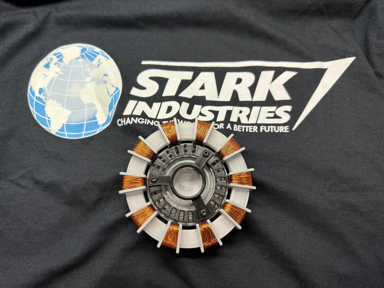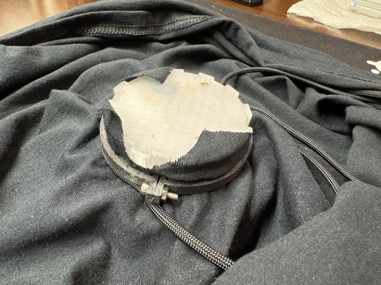 Đây là một cái kẹp cho phép bạn gắn bộ phản ứng hồ quang vào áo sau khi cắt một “X” vào vải. Đừng loại bỏ bất kỳ vật liệu nào, chỉ cần cắt lỗ và gập các góc giữa cái kẹp và bộ phản ứng hồ quang. Sử dụng phần cứng M3 để cố định nó.