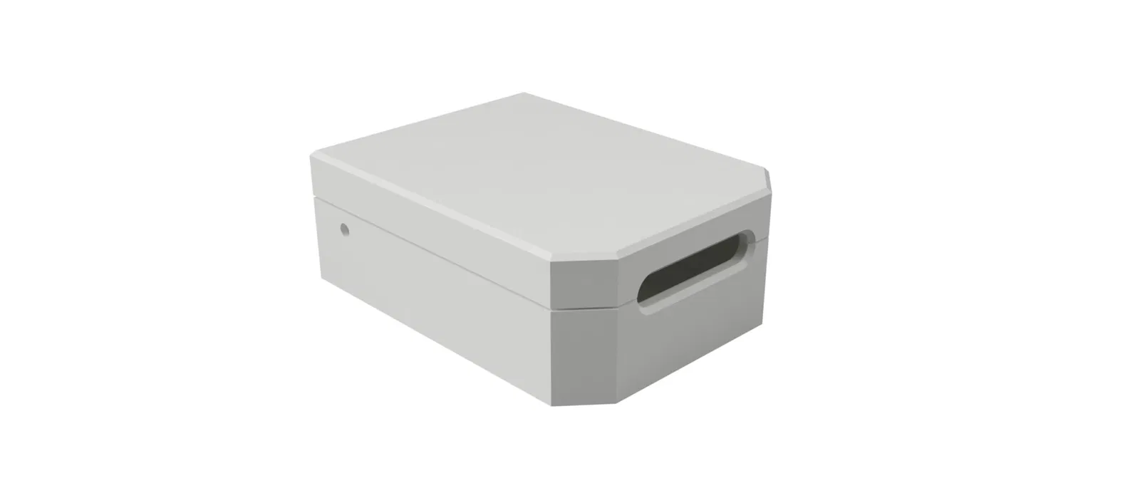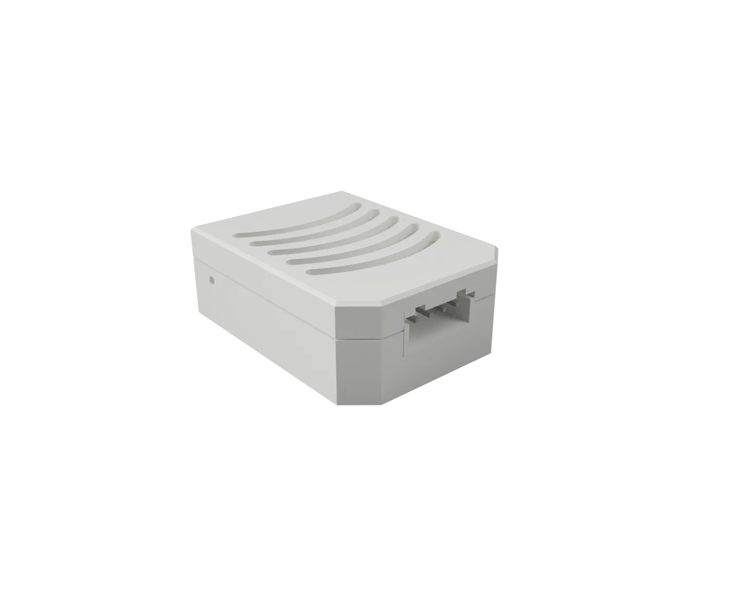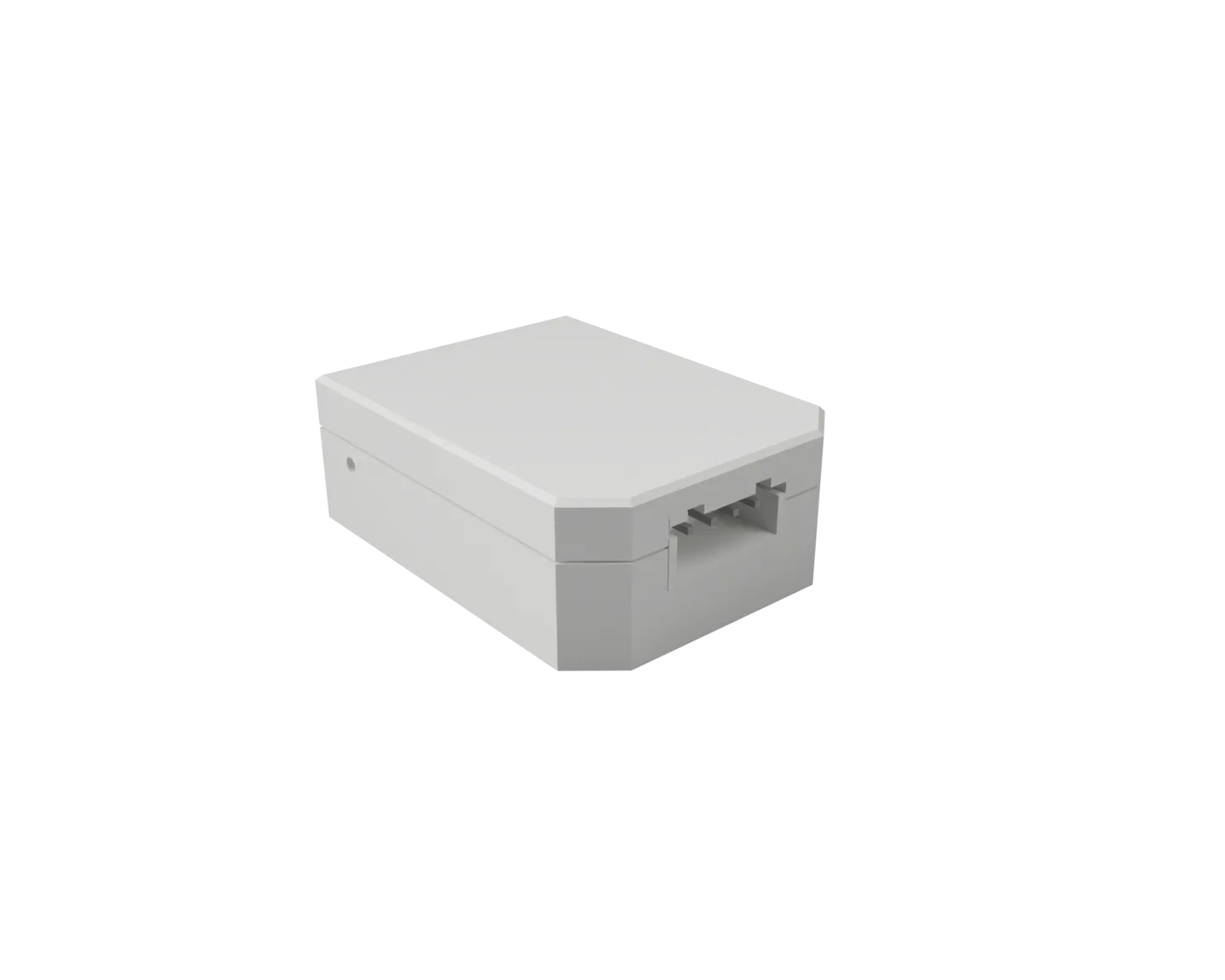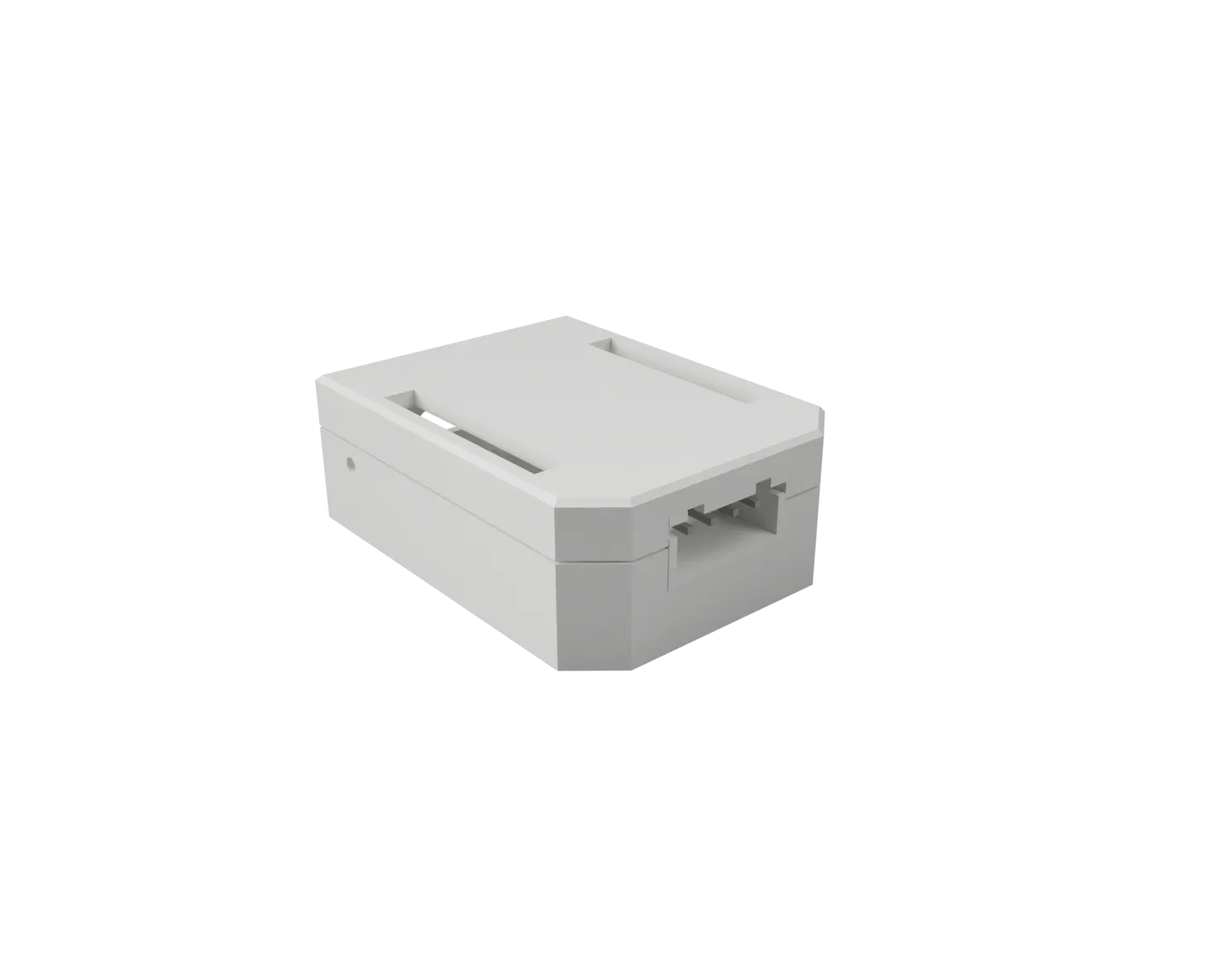 - Lỗ hình dạng USB-C Cập nhật 28/10/23 - Đã điều chỉnh vị trí của khe ở cuối sao cho nó nằm nửa trên đáy và nửa trên nắp để dễ dàng tháo bo mạch ra khỏi vỏ nếu dây được hàn vào.