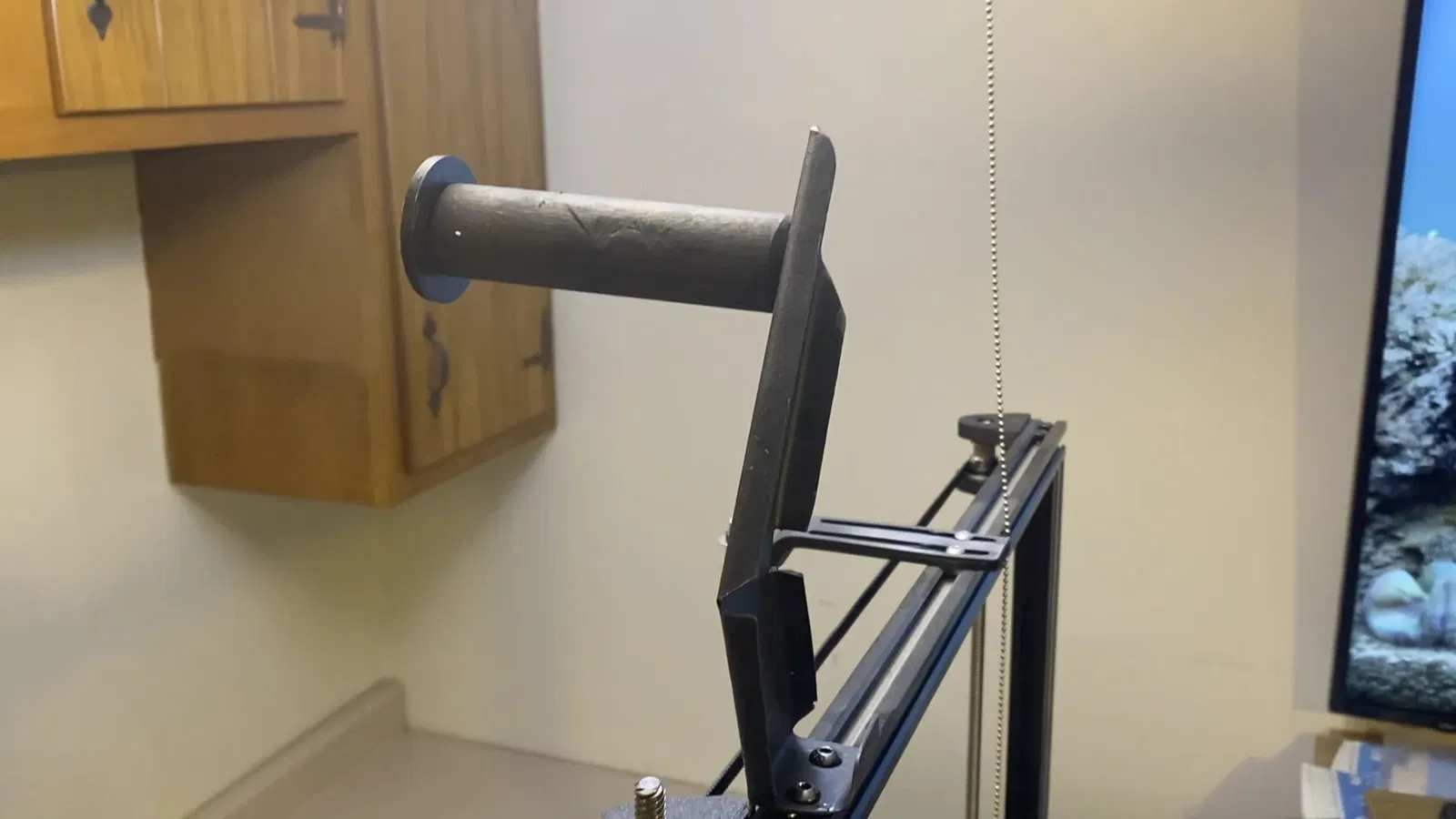 Giá đỡ cuộn filament với cạnh in gắn vào thanh gỗ