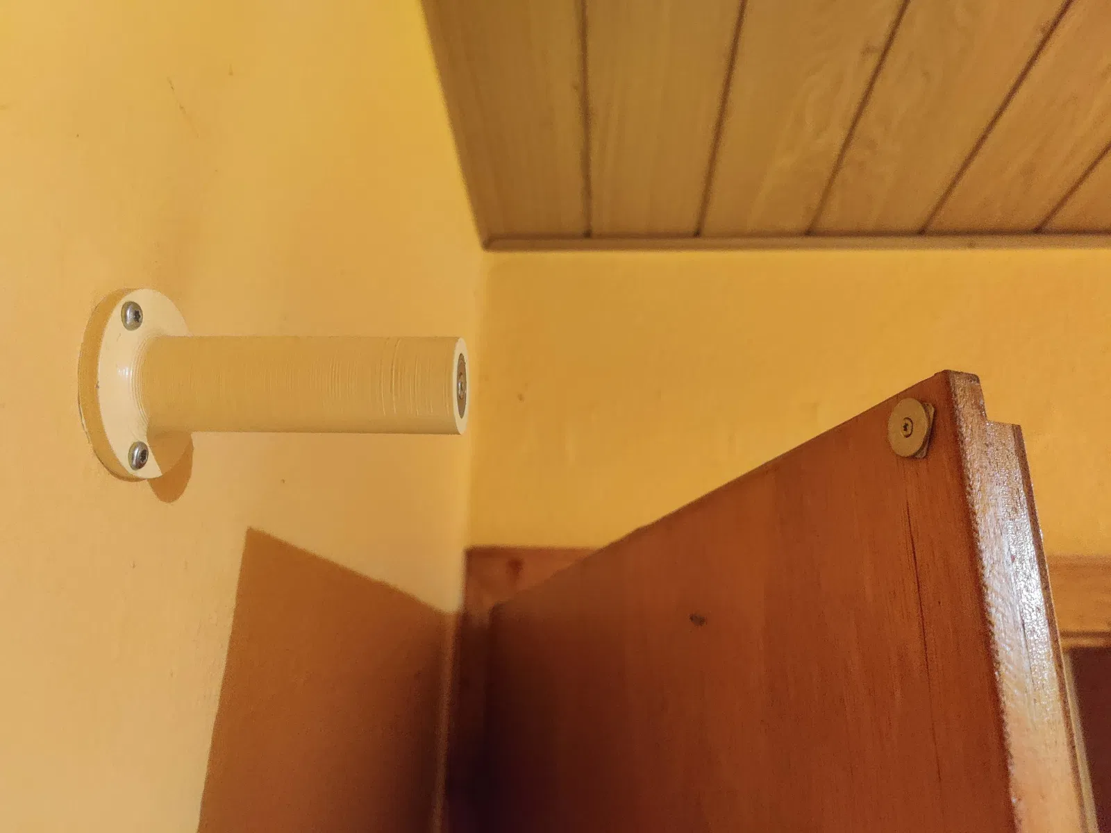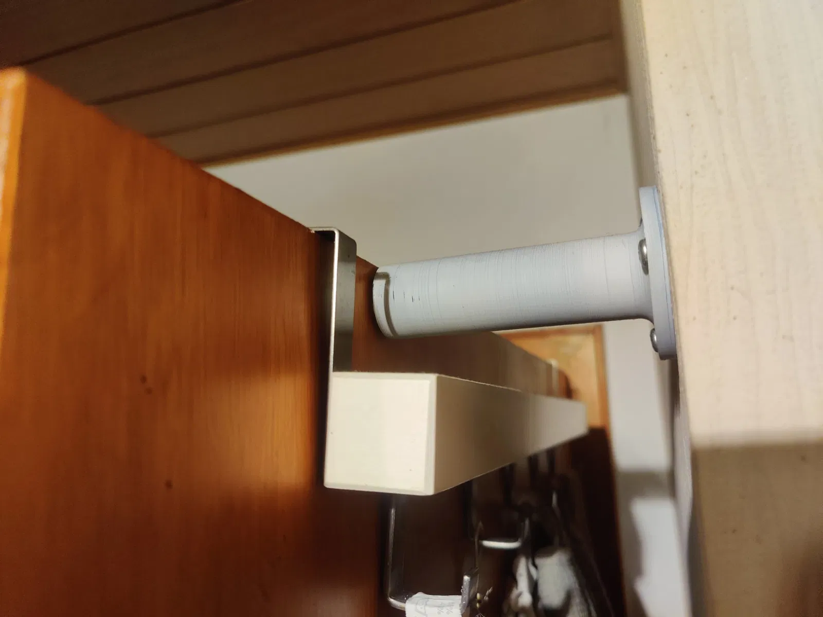 Ở bên cạnh nơi cửa va chạm có một chỗ lõm cho một nam châm. Nam châm này được gắn vào cái chặn cửa bằng một con ốc chìm M4x16.