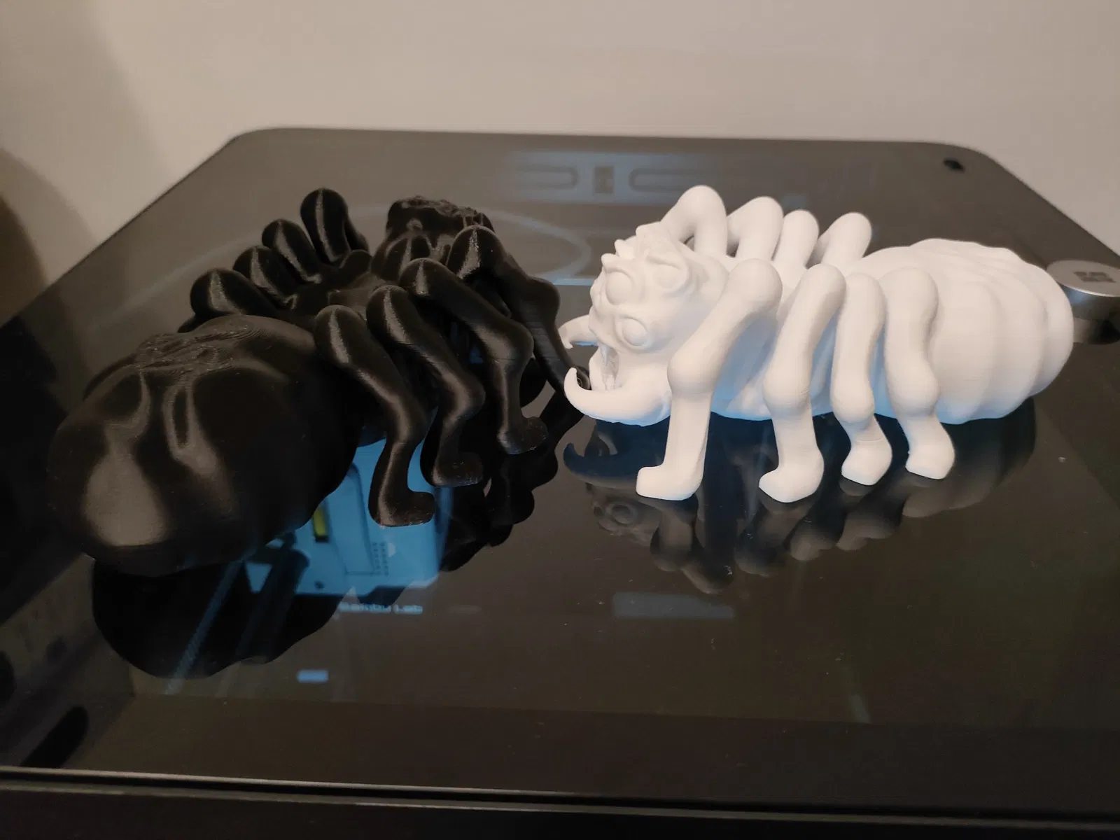 In với đầu phun 0.4, chiều cao lớp 0.12 - PLA tiêu chuẩn màu trắng và đen.