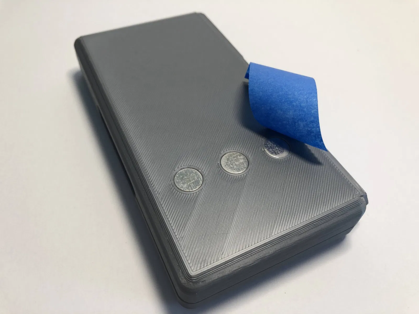 - Nhấn các nam châm 6x3mm vào các lỗ góc để chúng hút nhau khi case được đóng lại.