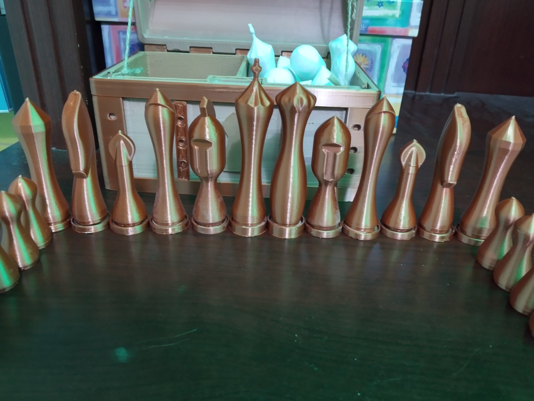 Mục đích Trò chơi yêu cầu một số quân cờ bổ sung mà không có trong bộ cờ vua tiêu chuẩn, vì vậy đây là chúng. Những thiết kế này dựa trên mũ bảo hiểm Corinthian và giáo dory. ### Sản xuất In các quân cờ với chế độ bình hoa xoắn ốc được bật, cũng như chế độ tuần tự. Trong mỗi màu, bạn sẽ cần: - 1 nhà vô địch