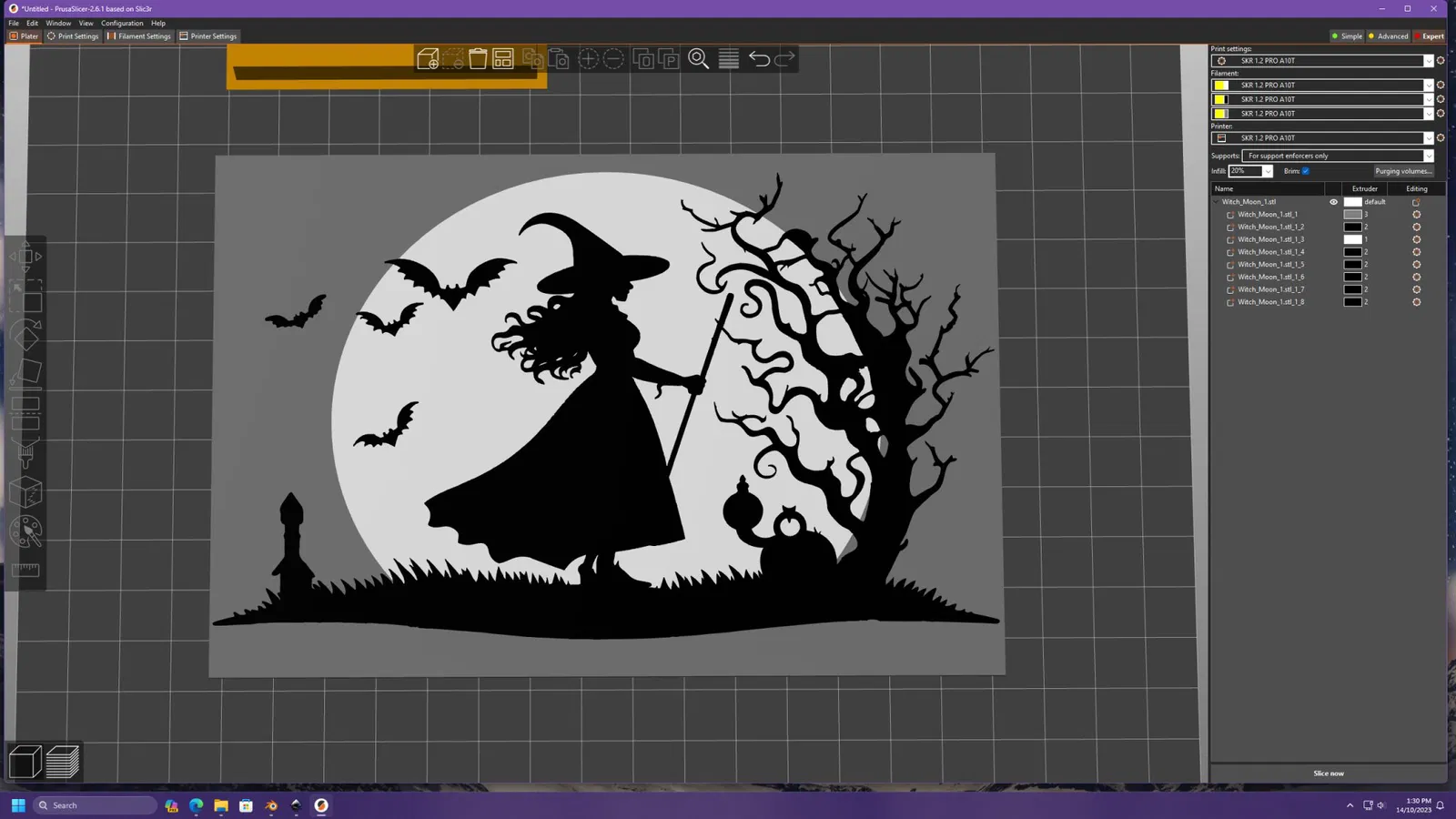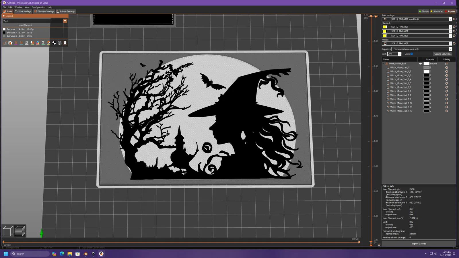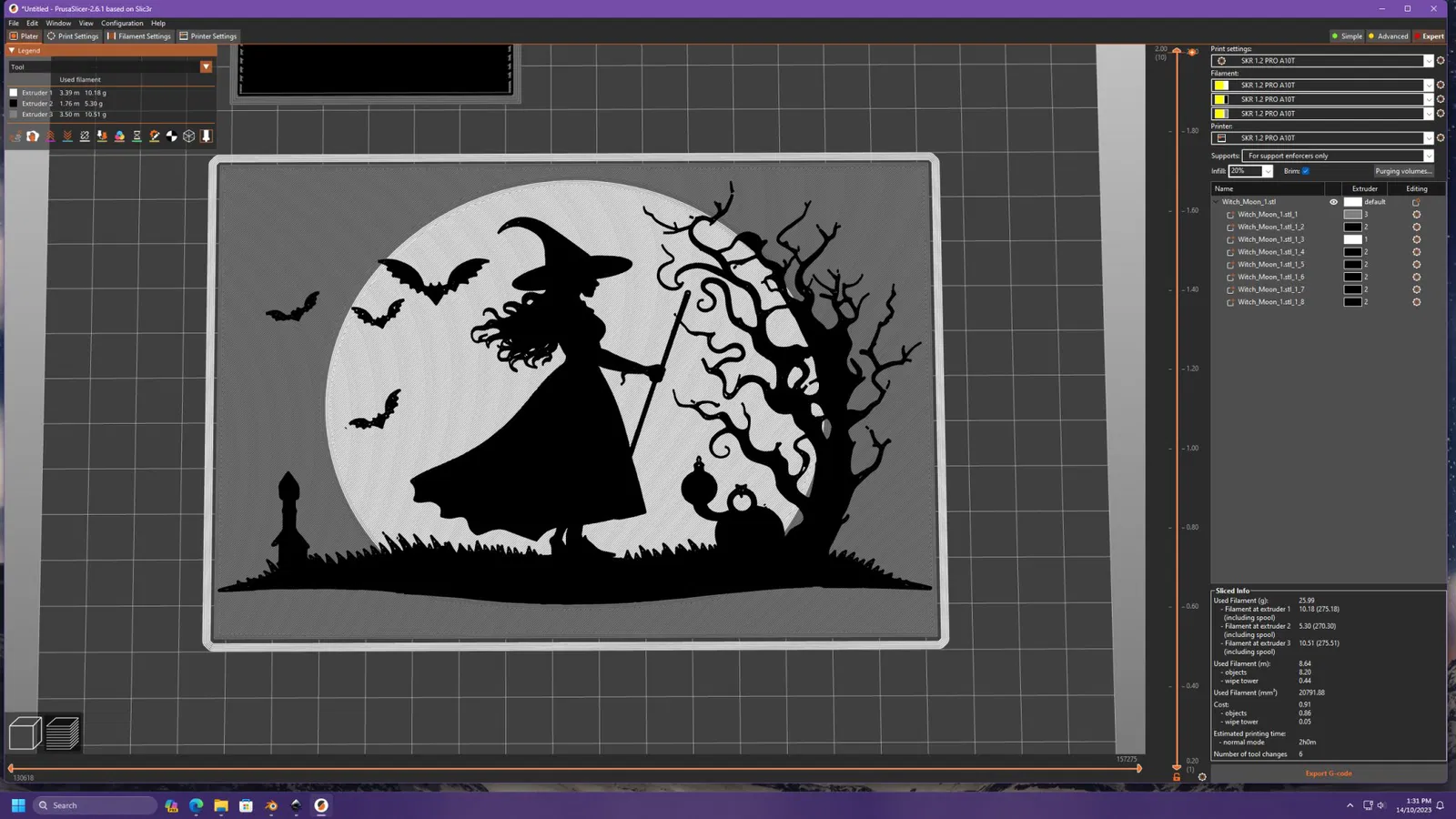 Phù thủy trong ánh trăng, được thiết kế trong Blender.