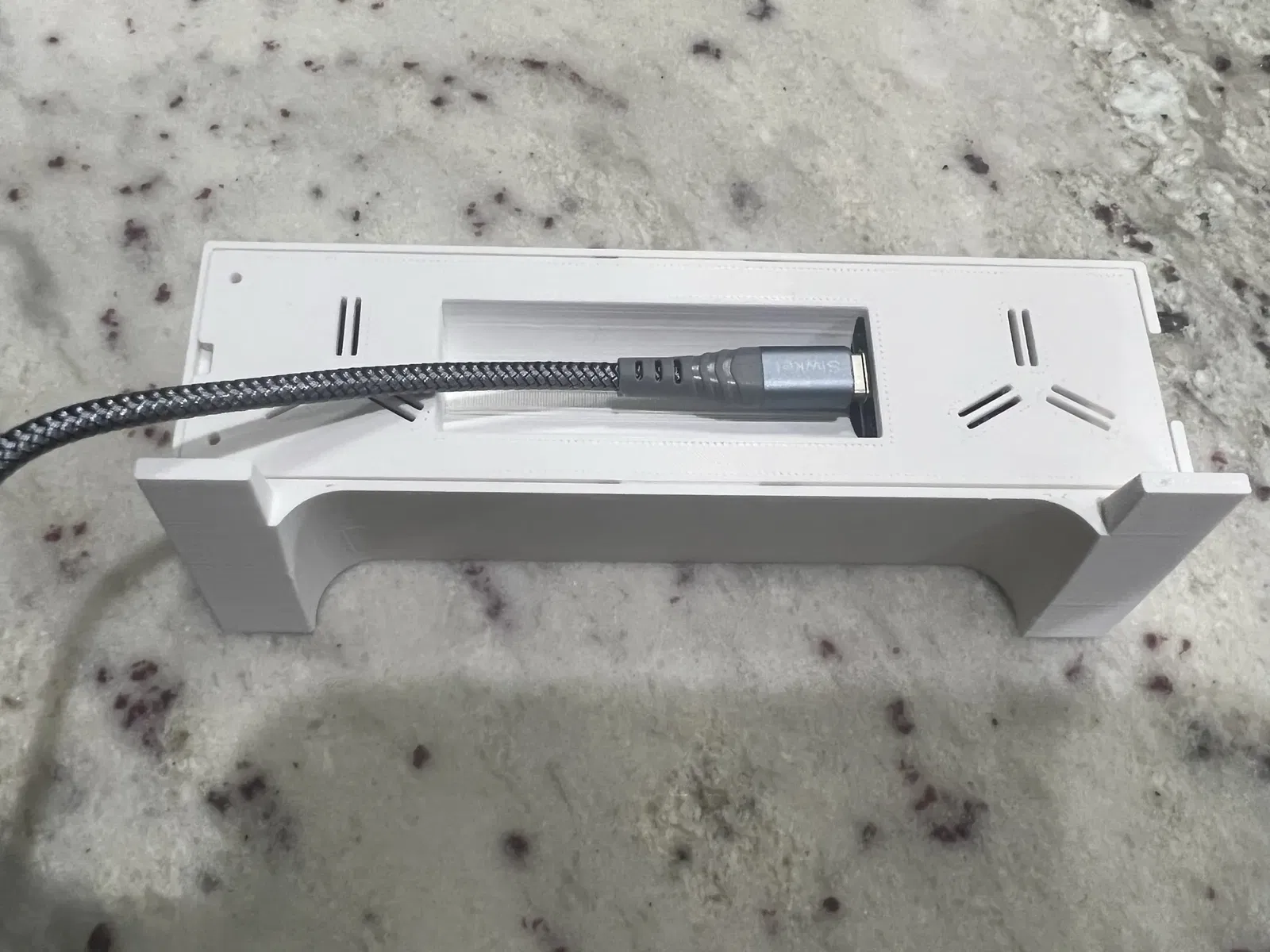 Tôi không thích cách cổng USB nằm ở bên cạnh của mẫu gốc, vì vậy tôi đã chỉnh sửa tấm plate để căn chỉnh cổng USB ở giữa. Bằng cách này, bạn có thể dễ dàng giấu cáp và về mặt thẩm mỹ thì trông đẹp hơn nhiều. Tôi cũng gặp khó khăn khi lắp mô-đun ma trận chấm vào đế, vì vậy tôi cũng đã chỉnh sửa mẫu đế và làm cho khe cắm rộng hơn một chút.