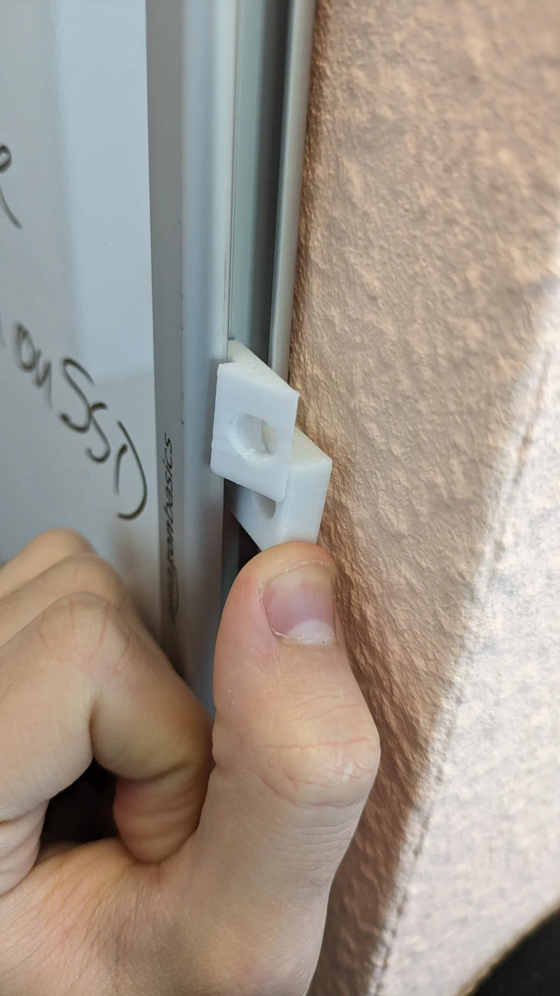 Giá đỡ nhôm ban đầu đã được đặt ở phía sai của bảng trắng, vì tôi muốn lắp đặt nó theo chiều dài. Vẫn không có tùy chọn cho việc tháo rời không bạo lực, điều này đã cho phép tôi tái sử dụng các giá treo ban đầu, vì vậy tôi đã thiết kế của riêng mình.