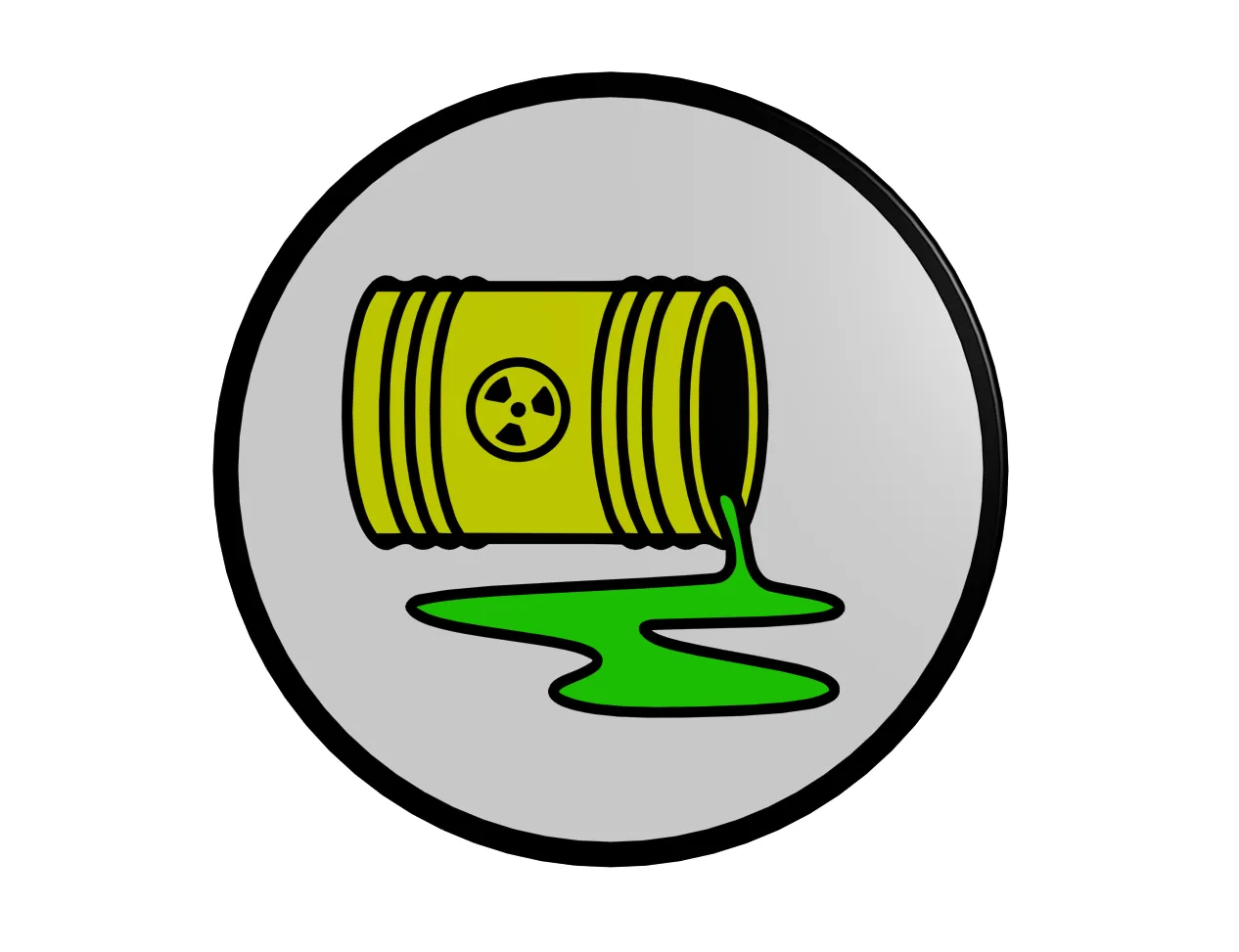 Đế lót ly in 3D hình thùng rác phóng xạ đổ tràn