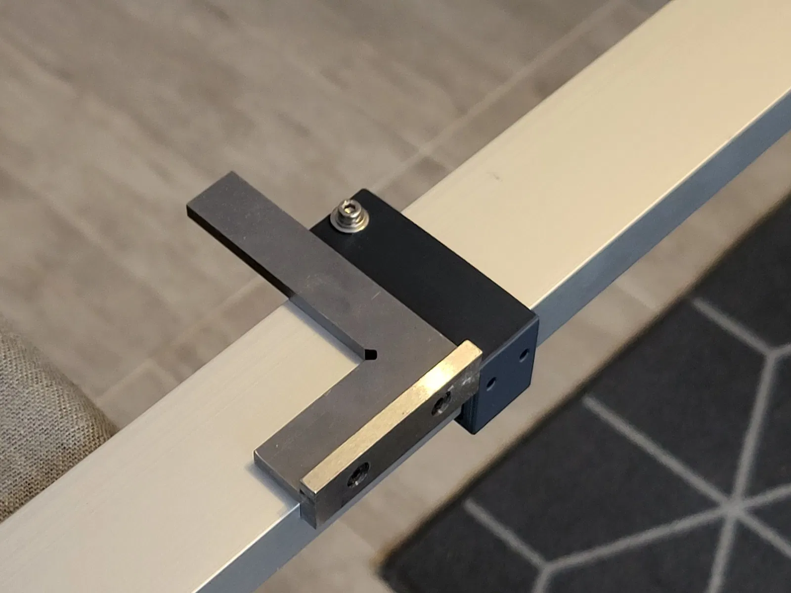 Khi cắt các thanh nhôm và khoan lỗ, bạn cần phải cực kỳ chính xác. Vì lắp ráp này sử dụng các ốc vít chìm, nên không thể điều chỉnh cho các lỗi bằng các lỗ kéo dài. Để làm cho công việc này dễ dàng hơn, tôi đã thiết kế một hướng dẫn giúp bạn khi cắt các thanh nhôm và cho bạn vị trí chính xác cho lỗ. Hướng dẫn được kẹp chặt bằng một ốc M4. Tôi đã sử dụng một thước vuông nhỏ để đảm bảo rằng đường cắt là vuông góc nhất có thể.