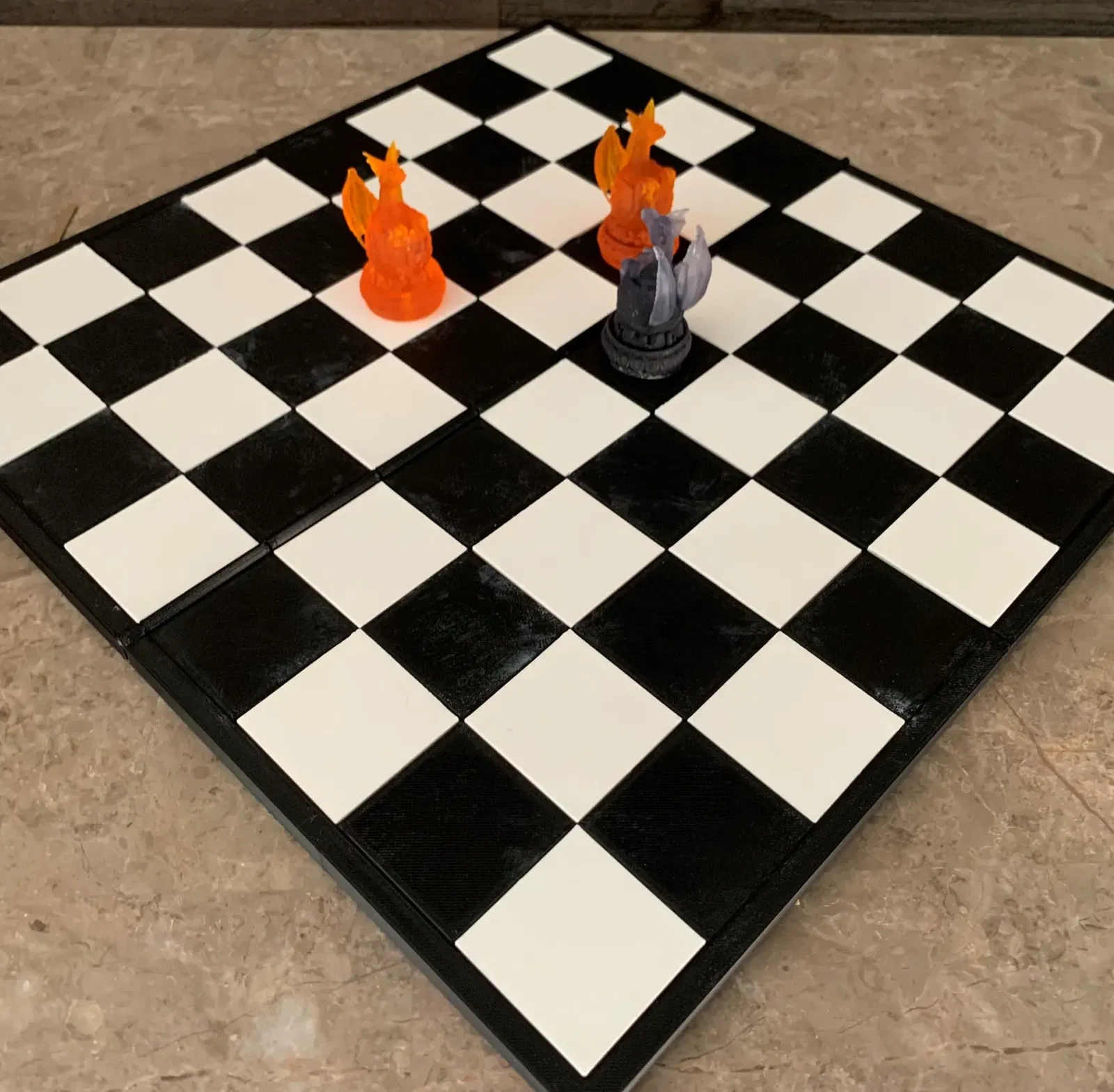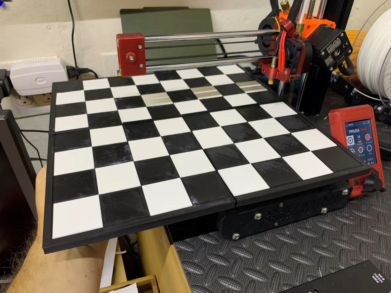 Nó được thiết kế đặc biệt với việc in trên Prusa Mini trong tâm trí, tất cả các bộ phận có thể được in trên Mini và sau đó đơn giản lắp ráp thành một Bàn Cờ Gấp.