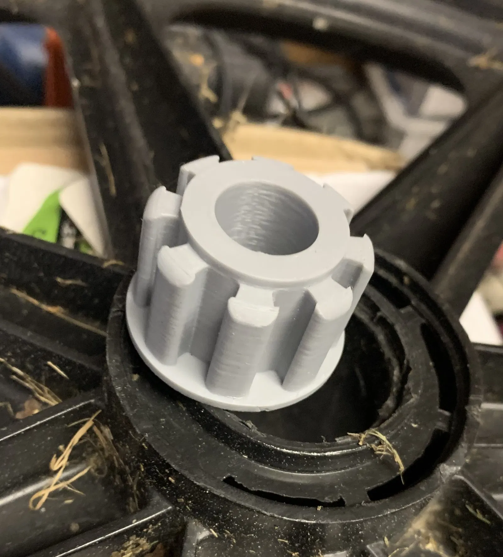 Trục bánh xe bị hỏng và thay vì chi $100 cho một bộ bánh mới, tôi đã tạo ra mô hình này. Tôi gợi ý nên cho một giọt chất bôi trơn vào bên trong trục. Tôi đã làm những cái này từ ABS. Cần thử nghiệm lâu dài.