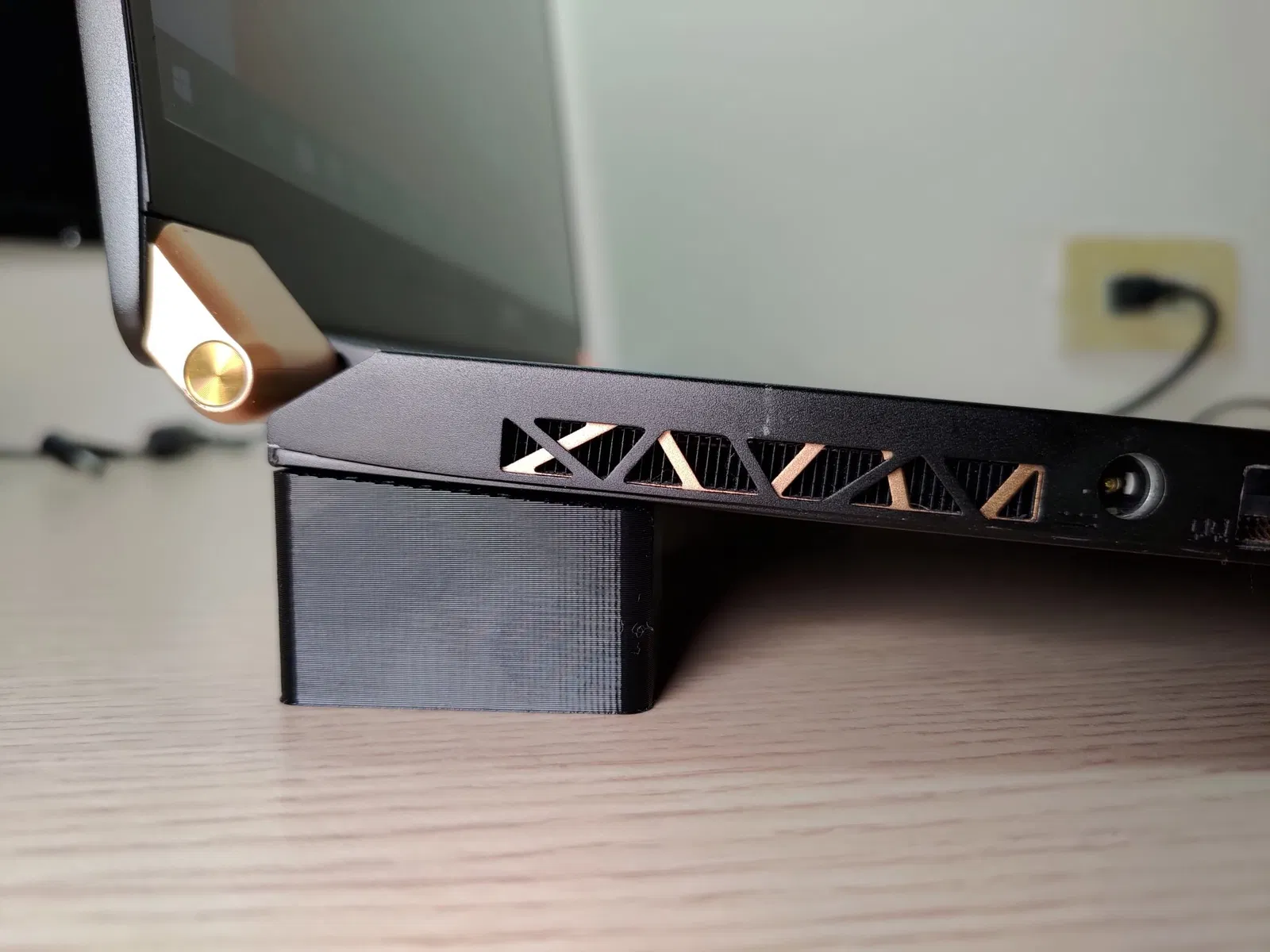 Một mô hình đơn giản mà tôi tạo ra để nâng MSI GS75 của mình nhằm cải thiện khả năng tản nhiệt và trải nghiệm gõ phím, nó được thiết kế để có độ vừa vặn hơi chặt để không dễ rơi ra.