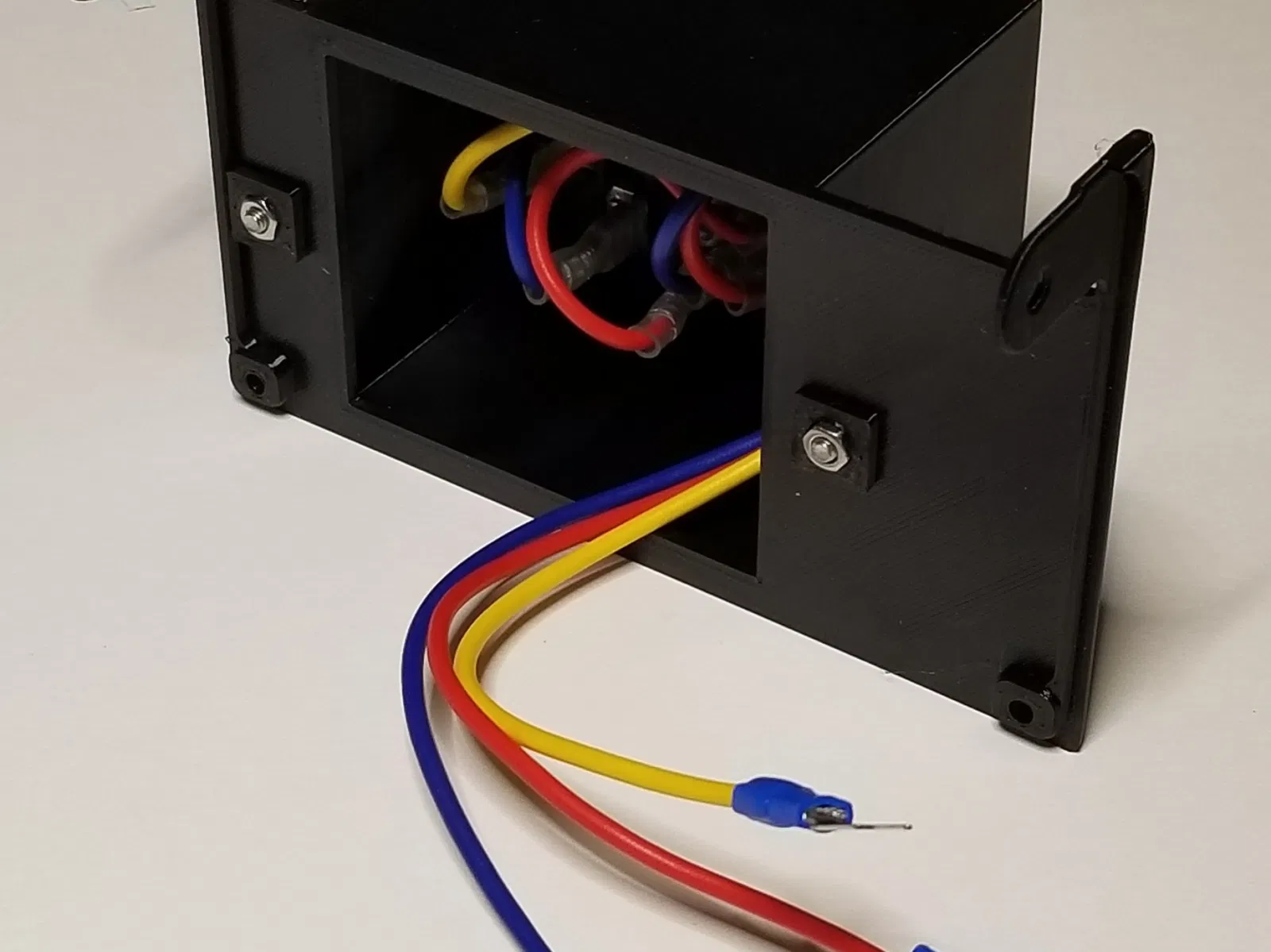 Bạn sẽ cần hai vít M3x8 và đai ốc để gắn ổ cắm vào hộp. Bạn sẽ cần hai vít M3x10 và đai ốc để gắn hộp ổ cắm vào nắp bản lề.