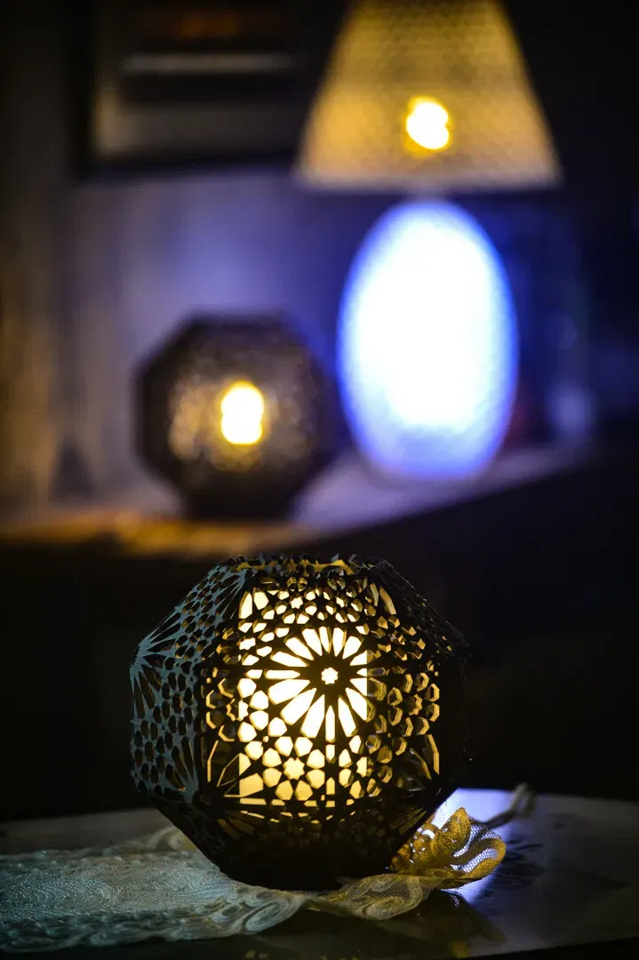 Đèn này dựa trên một họa tiết hình học 8 gấp theo kiểu arabesque Andalusia tuổi nghìn năm, "Al Hambra Rosette".
