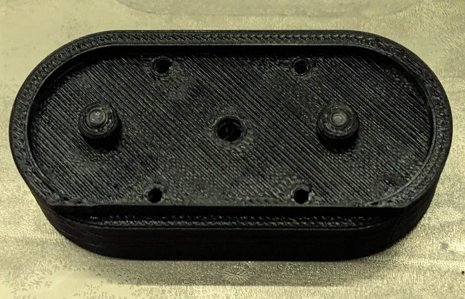 Tùy chọn: Tôi hơi lo lắng rằng các chốt định vị có thể bị gãy (lực tác động lên các lớp in) nếu bị va chạm. Nếu bạn có 8 con vít lục giác đầu rãnh m3 nằm xung quanh, bạn có thể chèn chúng vào các lỗ để tăng cường độ bền như trong bức ảnh thứ hai. Các vít SHCS dài 4mm và 6mm có thể được vặn vào hoàn toàn. Các vít dài hơn lên đến 12mm cũng nên hoạt động, chỉ cần không vặn chúng vào sâu hơn như đã chỉ ra. Chúng sẽ tự khoan; việc khoan trước từ phía va chạm sẽ dễ hơn. Nếu bạn không sử dụng vít ở đây, bạn không cần phải tháo bỏ các giá đỡ che các lỗ đó.
