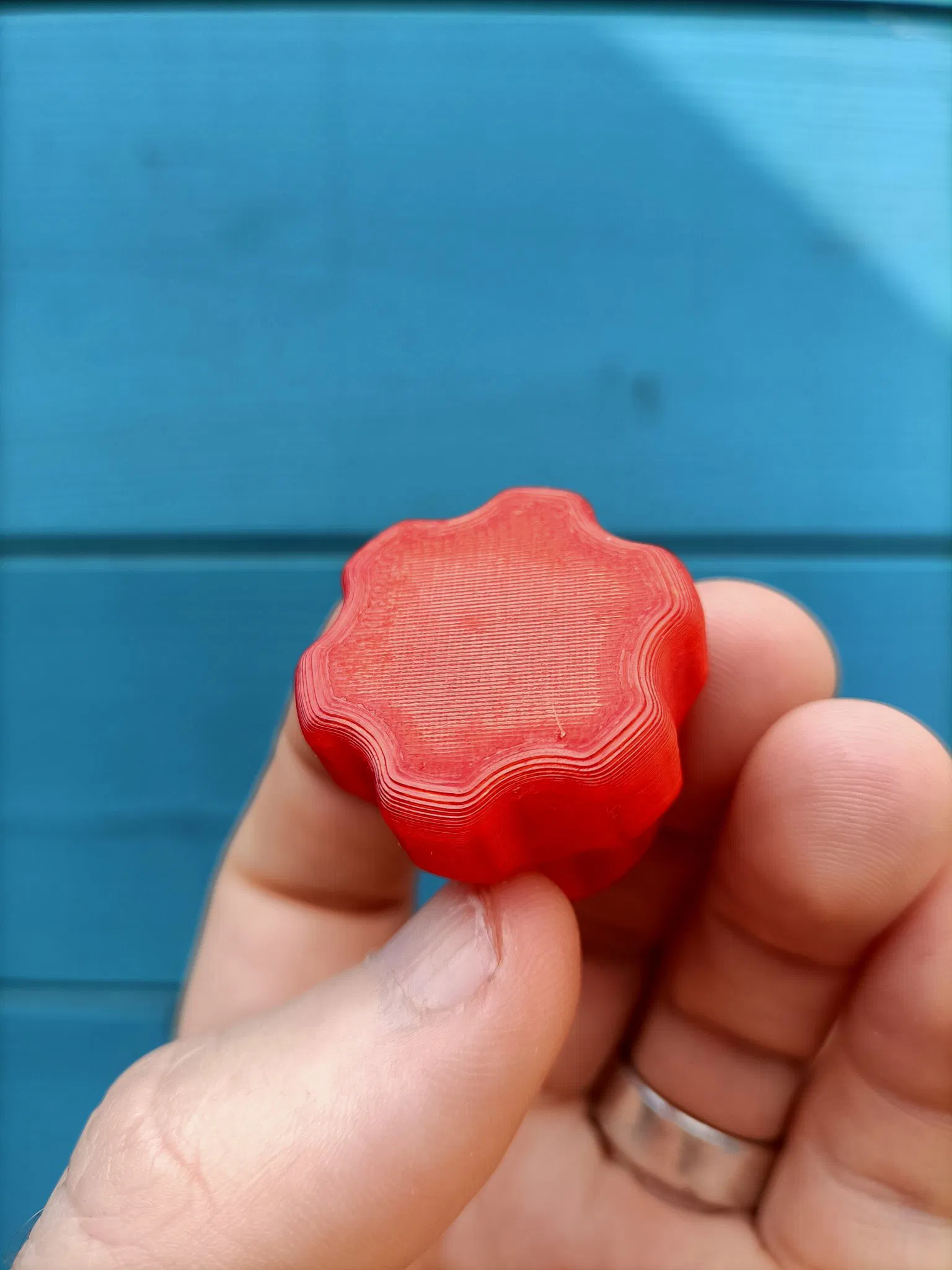 Tôi đã in cái của chúng tôi bằng PETG với 20% độ đặc (tôi muốn nó chắc chắn và vững chãi), bạn không cần bất kỳ hỗ trợ nào nhưng tôi đã sử dụng một lớp viền để giữ nó xuống.