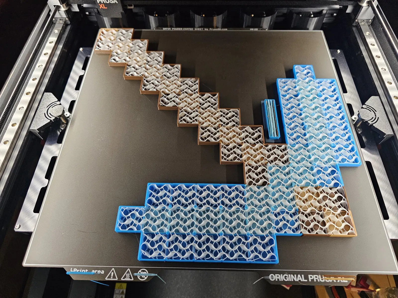 Tôi muốn phần bên trong có màu khác (màu trắng) để tránh sử dụng các màu khác của tôi. Tệp .3mf đính kèm có thể được mở trong eSlicer. Nó có tất cả các mẫu .stl. Nó cũng có các cài đặt mà tôi đã sử dụng để in trên Prusa XL với vòi phun 0.6. Nó có thể có thể thu nhỏ cho các máy in nhỏ hơn nhưng tôi chưa thử nghiệm điều đó.