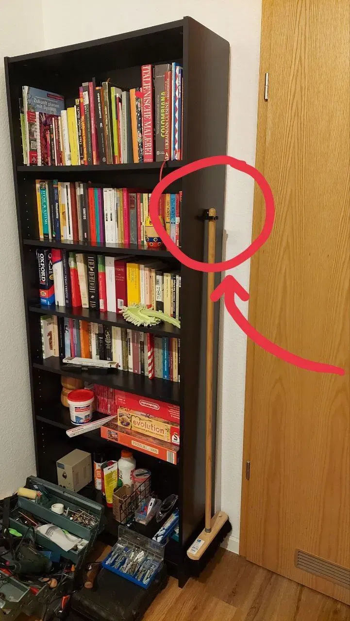 Hãy cho cây chổi của bạn một ngôi nhà ấm cúng mới, bất cứ nơi nào bạn có thể khoan cái móc này vào ;)