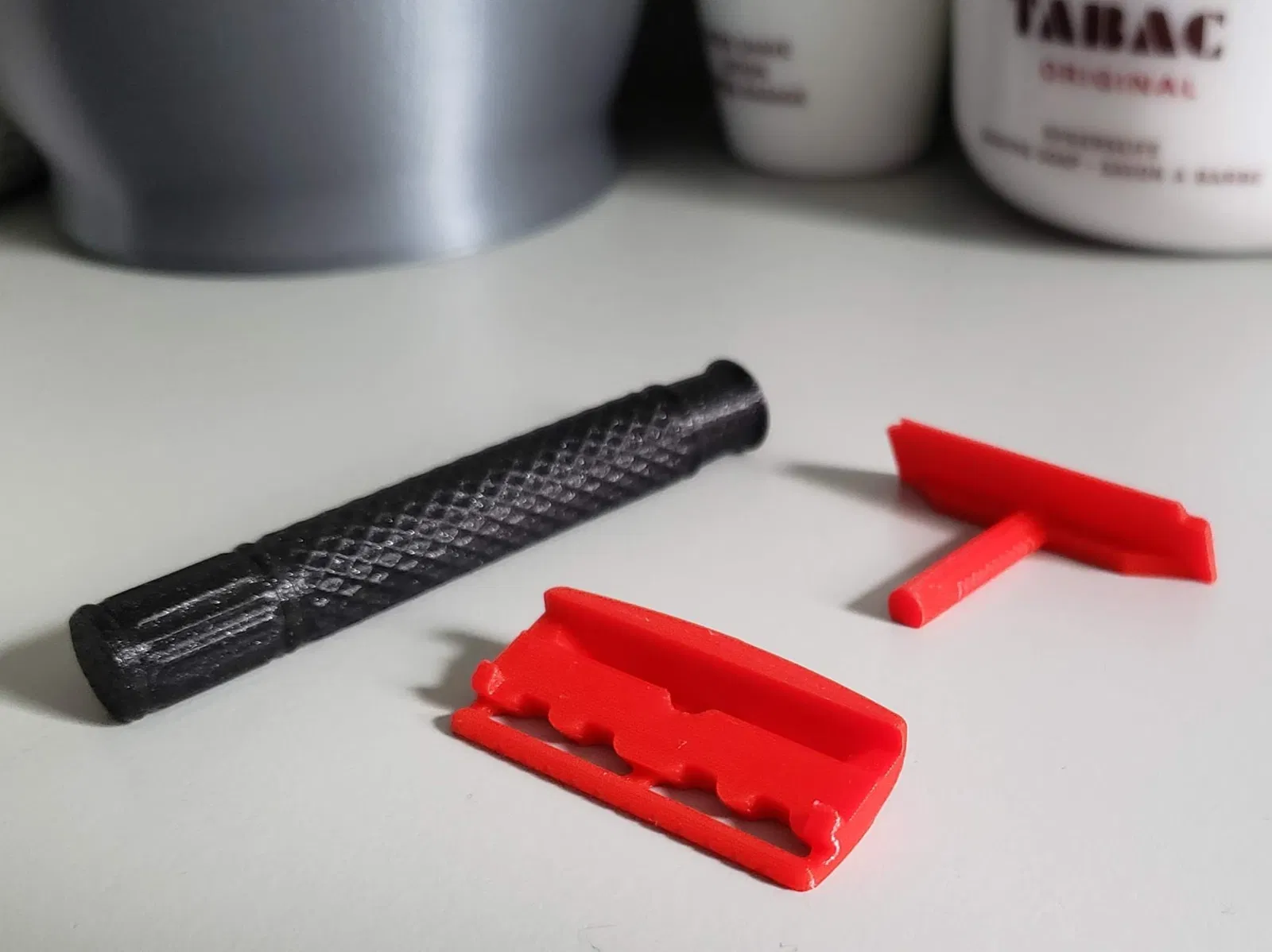 Razor an toàn được in hoàn toàn bằng 3D này sử dụng một lưỡi DE đã được cắt đôi và có hình dạng đầu nhỏ hơn, giúp dễ dàng điều khiển hơn. Khoảng cách lớn giữa thanh an toàn và giá đỡ lưỡi làm cho việc rửa sạch dễ dàng và cung cấp phản hồi âm thanh tốt hơn. Vui lòng đăng tải các sản phẩm của bạn. Thưởng thức
