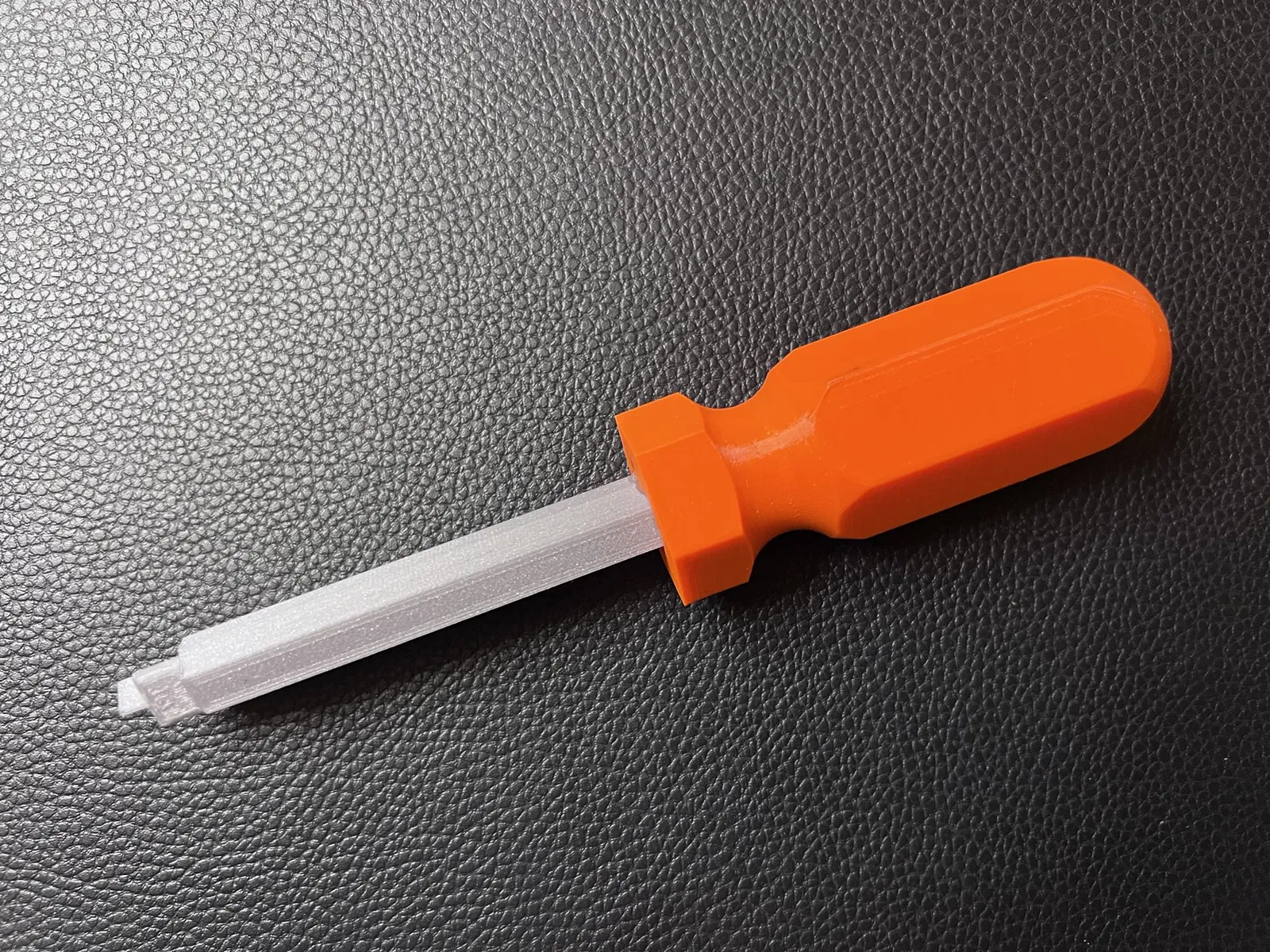 Tua vít dán từ hai phần. Không phải là một thân tròn vì nó sẽ chỉ rất tệ khi in.