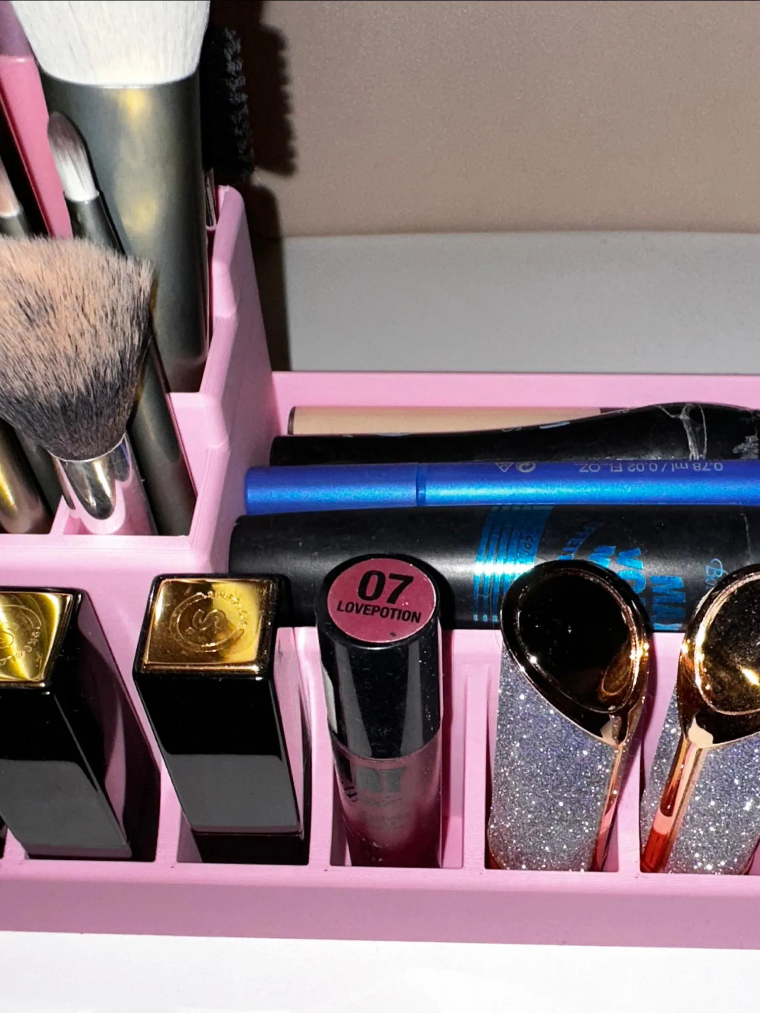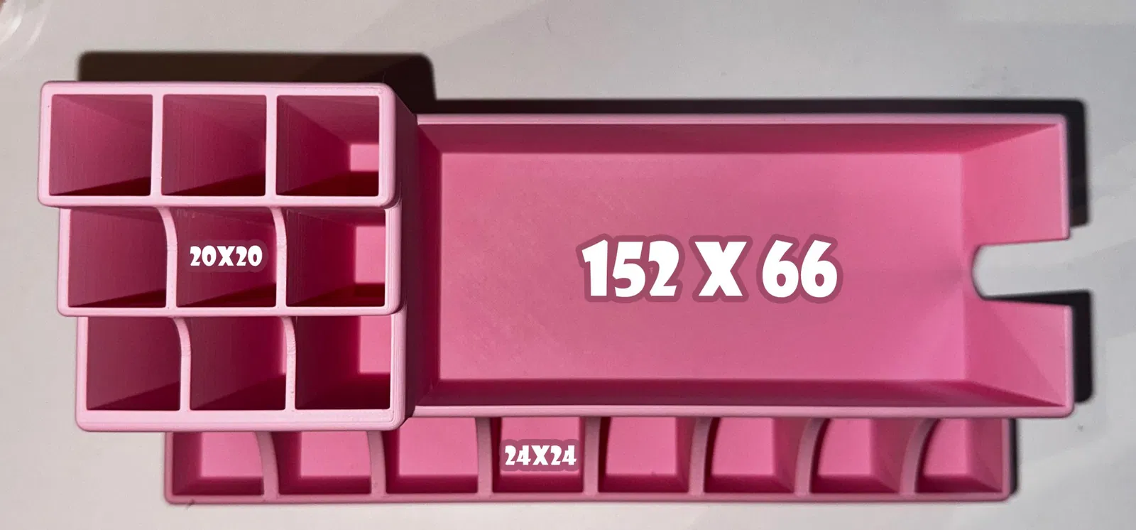 Một nhà tổ chức trang điểm với 9 ngăn 20x20, 8 ngăn 24x24 và khay 152x66.
