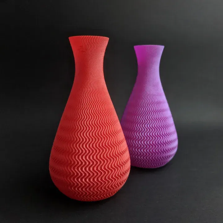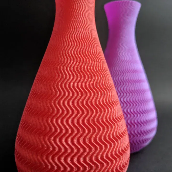 Vases thực sự chỉ là một cái cớ để chơi với hình dạng, và trong trường hợp này, là các hàm toán học :D Ở đây chúng ta có một đường viền được cấu thành từ một đường cong sin kết hợp thêm với một đa thức để có được đường cong đẹp ở đáy. Nhưng không chỉ có vậy! Kết cấu đến từ một đường cong sin khác zig-zag lên toàn bộ.
