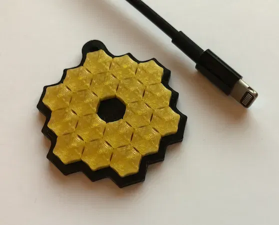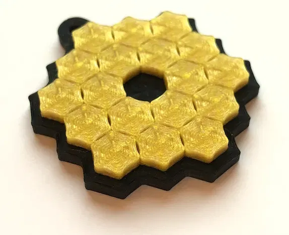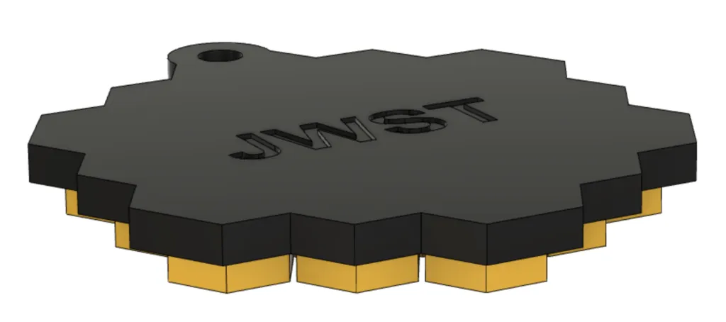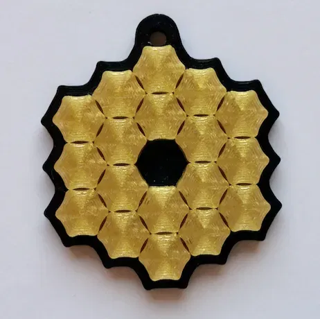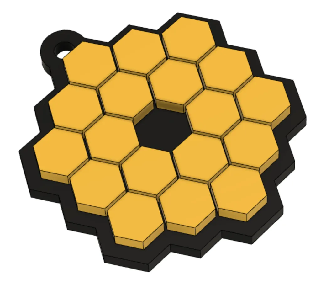 Keychain dựa trên tấm gương chính mang tính biểu tượng của Kính viễn vọng không gian James Webb. Hình học được đơn giản hóa.