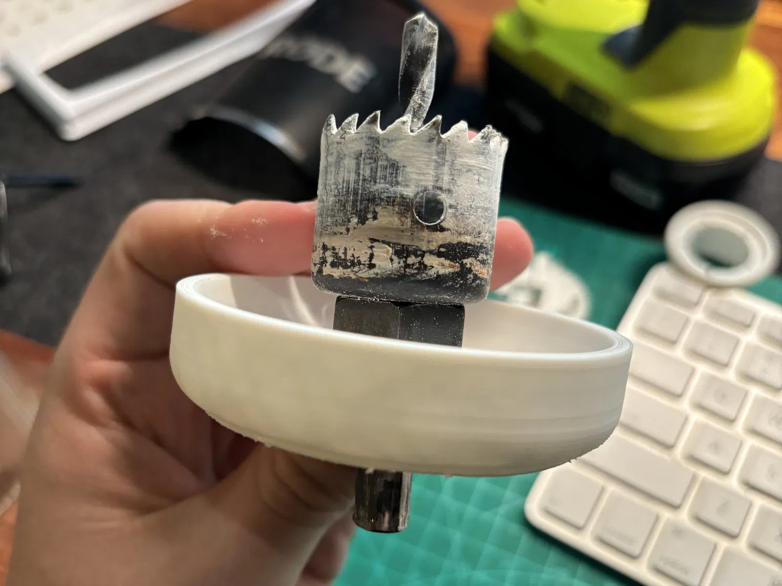 Được sử dụng cho một mũi khoan lỗ 32mm để thu thập bụi. Phù hợp với phần cuối của máy khoan ryobi của tôi