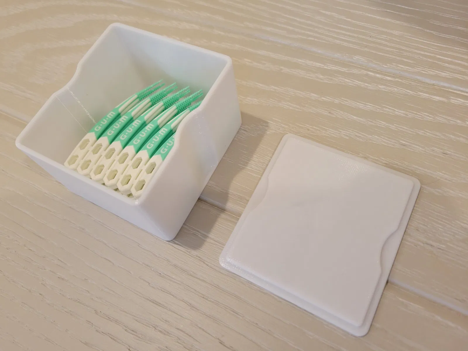 Tôi đã tạo giá đỡ dụng cụ nha khoa này để lưu trữ các dụng cụ nha khoa Gum của tôi trên bồn rửa và bao gồm một nắp để bảo vệ chúng khỏi những vết bắn thường xảy ra xung quanh bồn rửa nhà tắm.