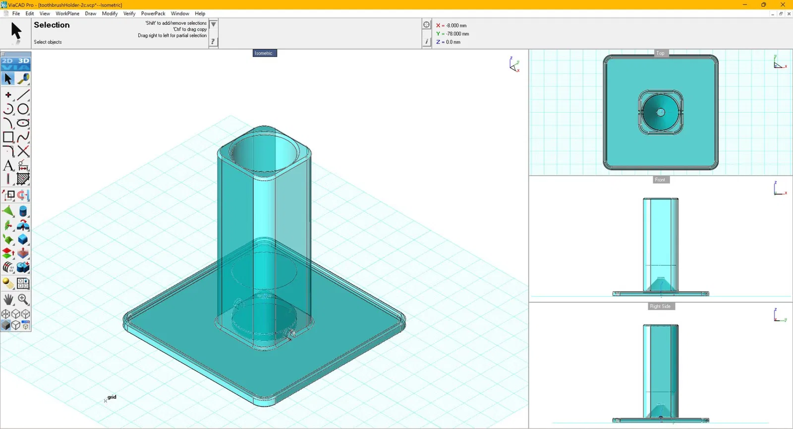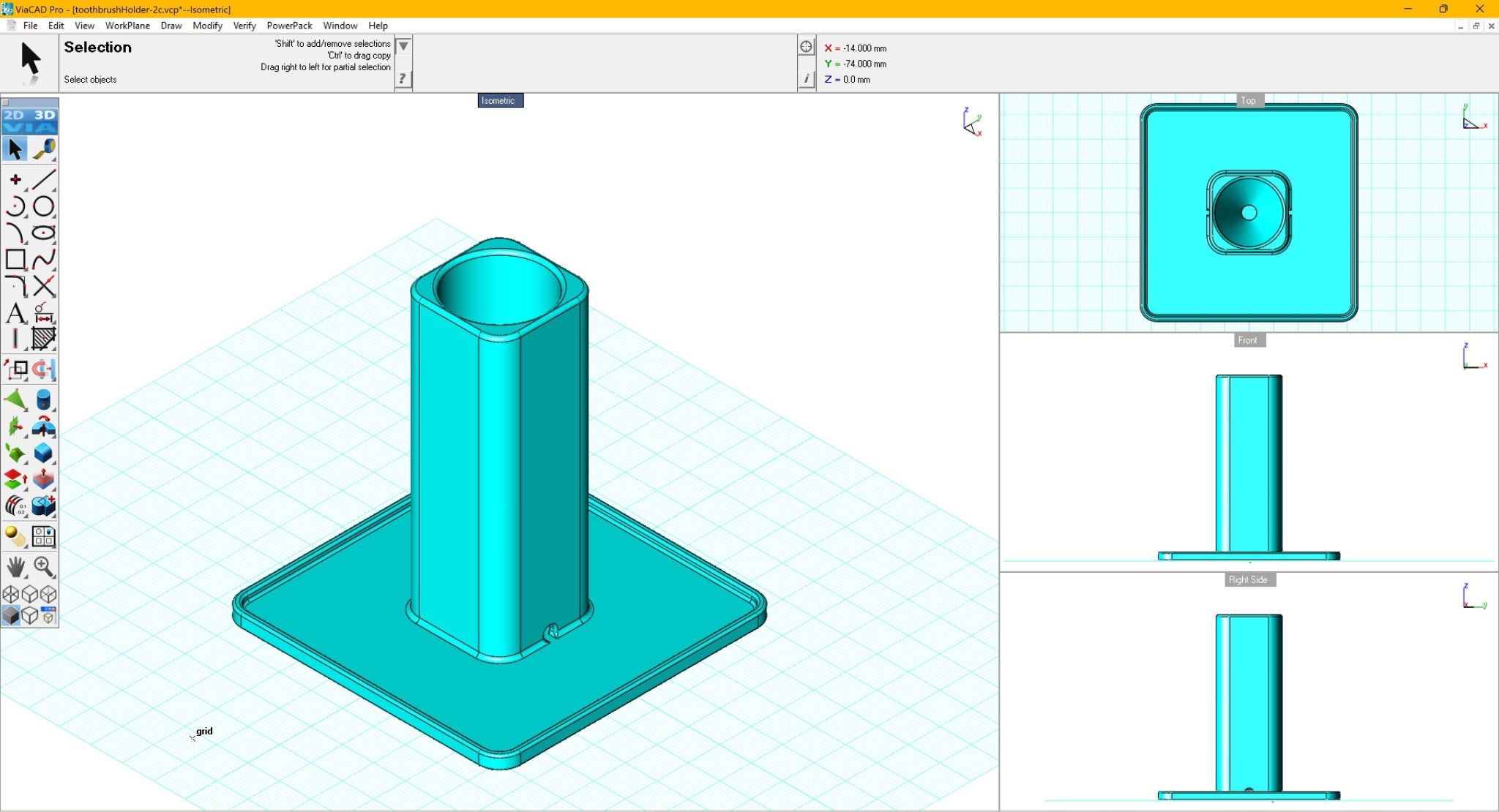 Phiên bản 2 của giá đỡ bàn chải đánh răng của tôi cải thiện khả năng in ấn và hệ thống thoát nước (do thiết kế lại hệ thống thoát nước bên trong) và thay thế hình trụ tròn bằng hình dạng vuông mà tôi nghĩ là đẹp hơn và phù hợp hơn với phong cách của các phụ kiện nhà tắm khác của tôi.