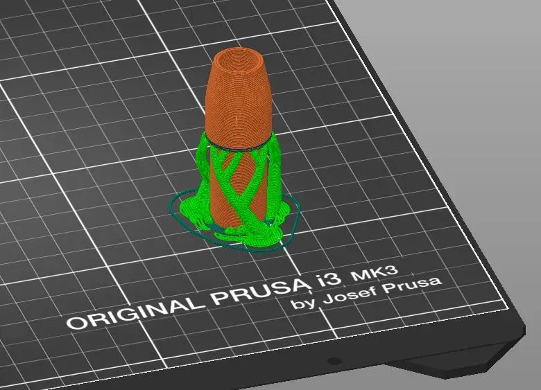 Phần này được in bằng filament linh hoạt Extrudr semisoft (độ cứng shore 85A). Để tránh bất kỳ vấn đề nào do bề mặt tiếp xúc nhỏ, tôi đã thêm hỗ trợ hữu cơ.