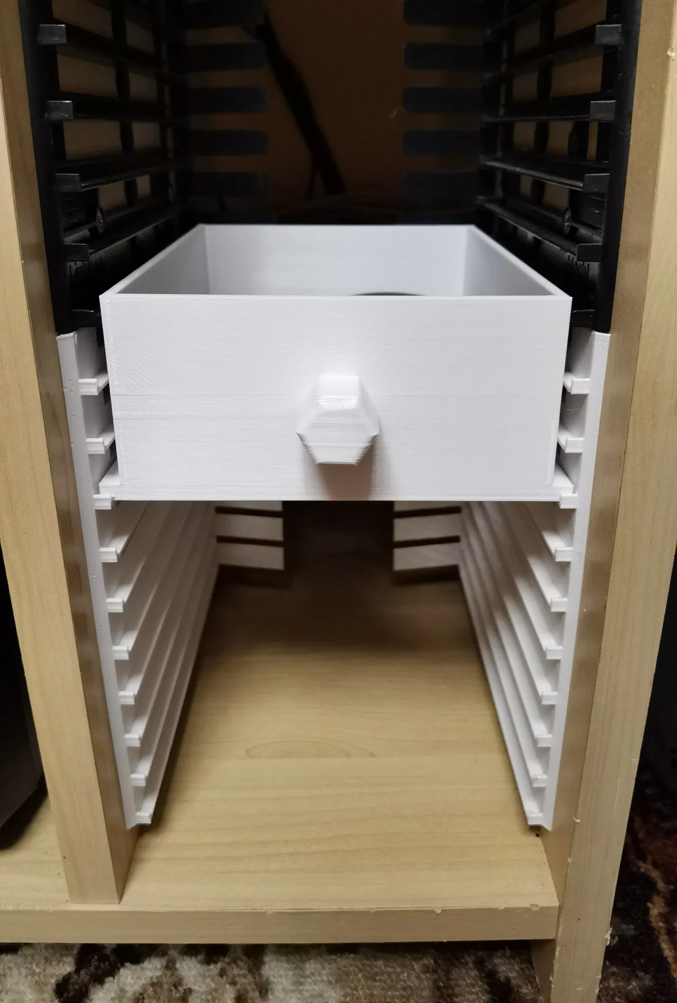 Bây giờ tôi đã thiết kế ngăn kéo để lấp đầy toàn bộ bàn làm việc.Nếu bạn có không gian trên bàn, bạn có thể tải xuống cả hai mô hình (ngăn kéo và bìa).Bạn có thể điều chỉnh ngăn kéo trong slicer trên trục X để phù hợp với khoảng trống trên bàn của bạn.