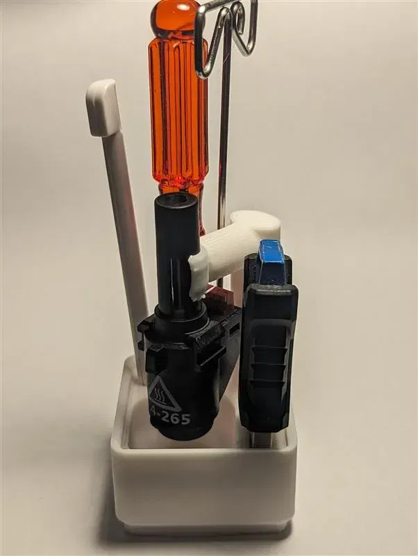 Khoang Gridfinity chứa vòi phun, công cụ và ổ USB. Cho phép dễ dàng truy cập vào các công cụ khi cần thiết.