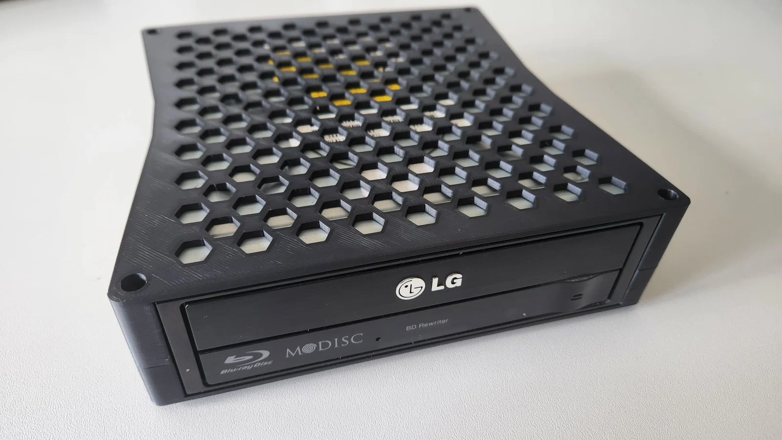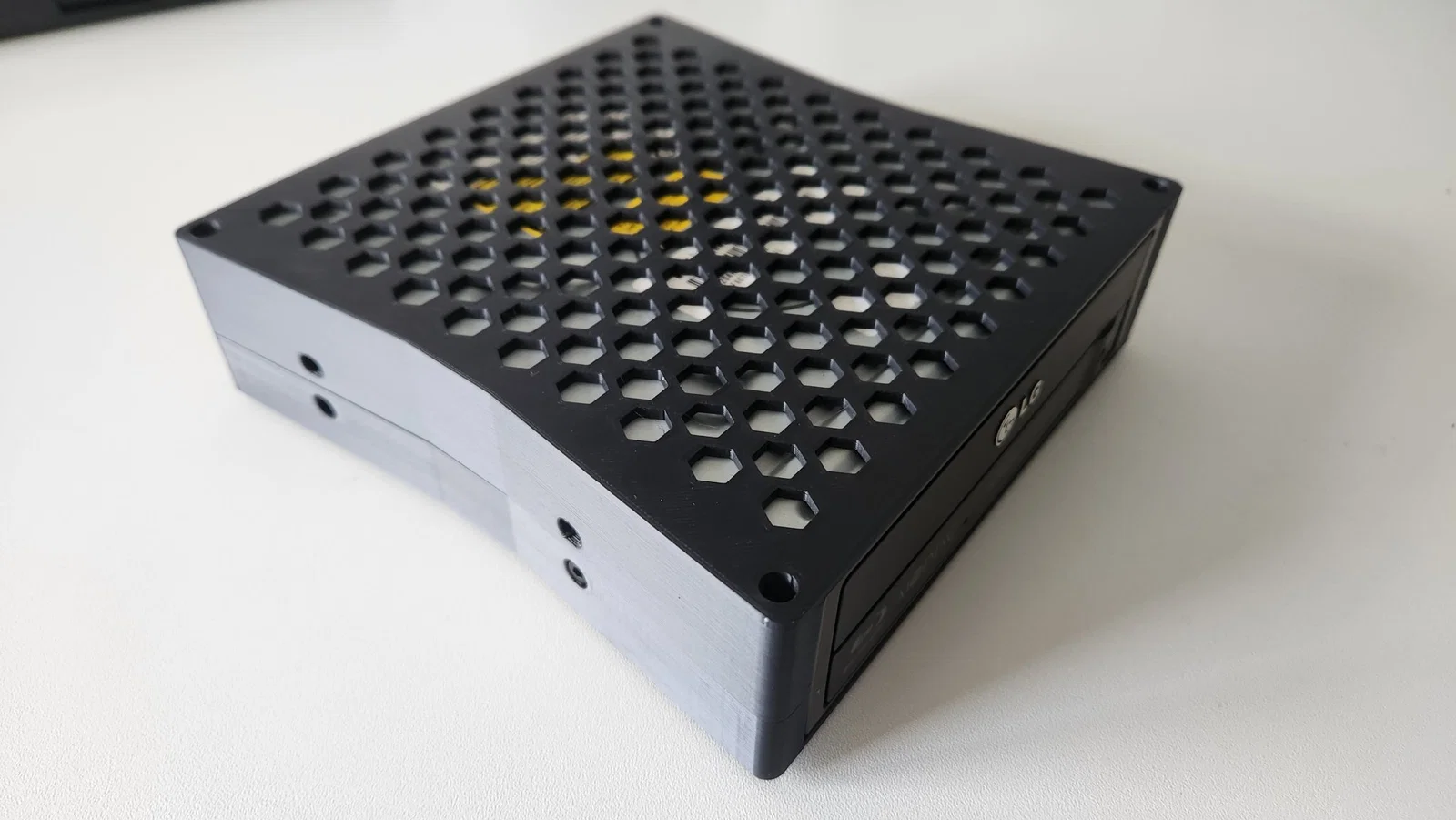 Đây là một tủ/hộp ổ đĩa CD/DVD/Bluray 5-1/4 để in thành 2 phần và lắp ráp với một vài ốc vít và đai ốc