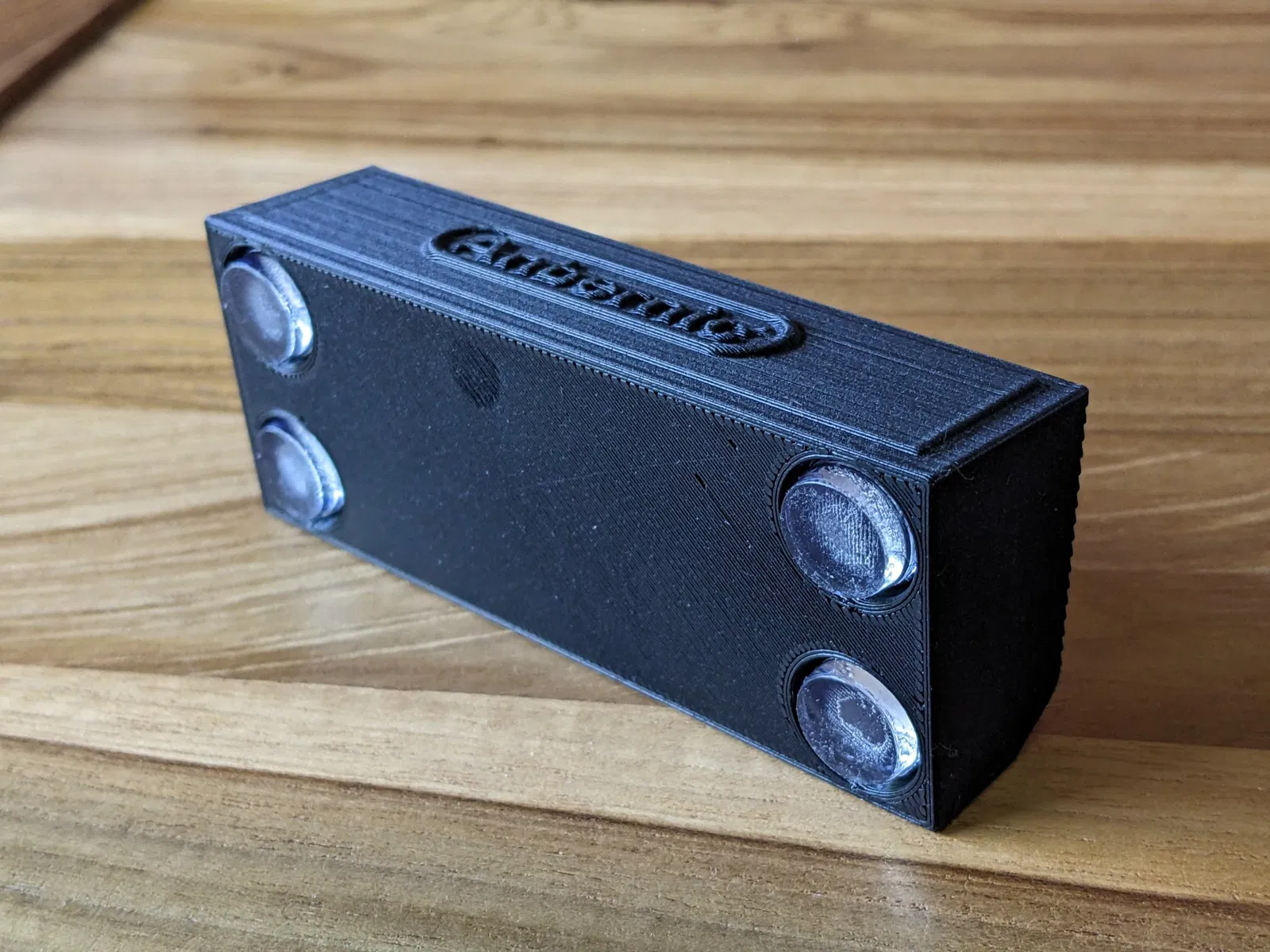 Sử dụng eSlicer để tùy chỉnh giá đỡ RG35XX do jlips làm. Logo Anbernic được mượn từ logo khởi động mà tôi đang sử dụng để có một cái nhìn khác. Tôi cũng đã thêm các khối âm ở phía dưới để gắn các miếng cao su mà tôi có sẵn nhằm đảm bảo giá đỡ không trượt xung quanh bàn làm việc của tôi (điều chỉnh chiều cao của các lỗ này nếu cần).