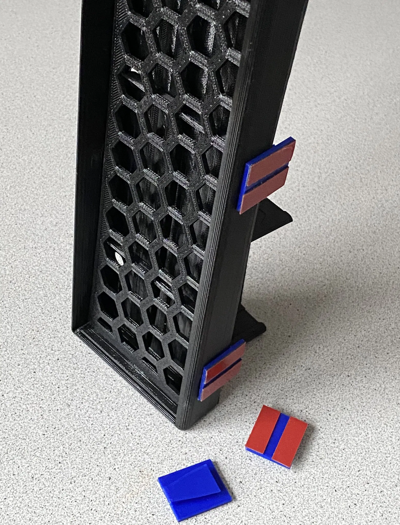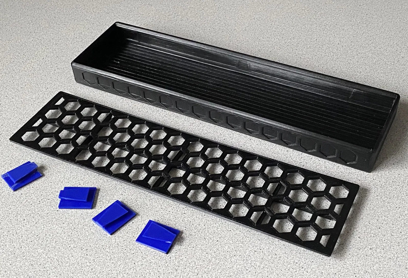 - Ba (3) bộ giữ, dễ dàng vừa với các lỗ nhận ở phía sau (thiết kế đuôi bồ câu) được trang bị băng dính hai mặt 3M-VHB để gắn vào mặt sau của khu vực máy rửa bát. Với thiết kế này, giá bao gồm lưới có thể được tháo ra khỏi tường để vệ sinh hoặc các mục đích khác. Hy vọng băng dính có thể chịu được tải trọng trong thời gian dài hơn. LOL