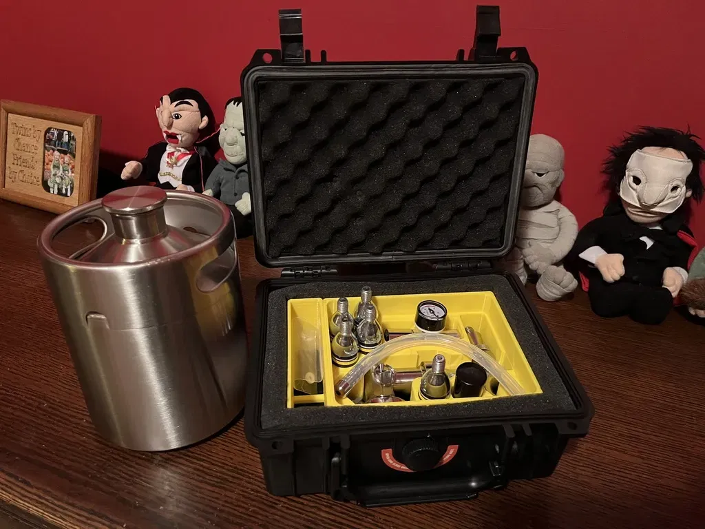 Tôi đã mua một bộ hệ thống Keg Mini 64oz áp suất, bình giữ nhiệt bằng thép không gỉ di động từ Amazon. Nó đi kèm với một túi để đựng tất cả các phụ kiện, nhưng tôi cảm thấy cần thêm. Vì vậy, tôi đã thiết kế cái hộp này để giữ cho các thành phần vòi được an toàn và có tổ chức. Nó hoạt động rất tốt, tuy nhiên tôi cần thêm bọt để đặt lên cụm vòi (Không hiển thị).