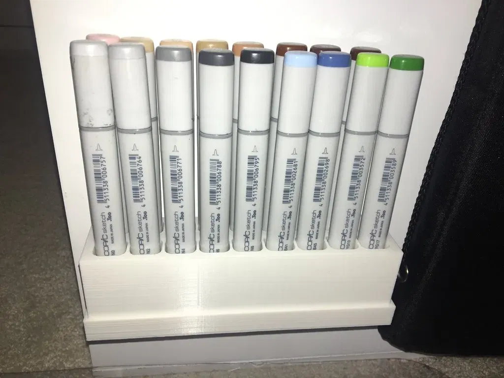 Khay có thể tháo rời và kệ cho các dấu hiệu Copic. Có thể giữ 18 điểm đánh dấu. Mất khoảng 20 giờ ở mức .2mm 25% để in