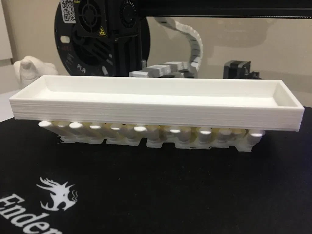 Tôi đã mất khoảng 20 giờ để in khay với độ dày 0.2mm và 25% độ đặc, và khoảng 10 giờ để in kệ với cùng cài đặt. Đối với những ai quan tâm đến việc chỉnh sửa thiết kế, tôi đã bao gồm các liên kết tinkercad bên dưới.